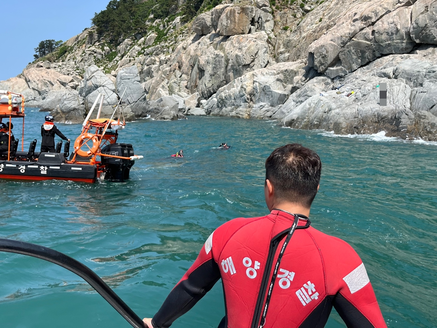현장에 도착한 구조세력은 갯바위 주변과 수중 수색을 실시하였으며, 수중수색 중 텐트와 핸드폰, 침낭 등