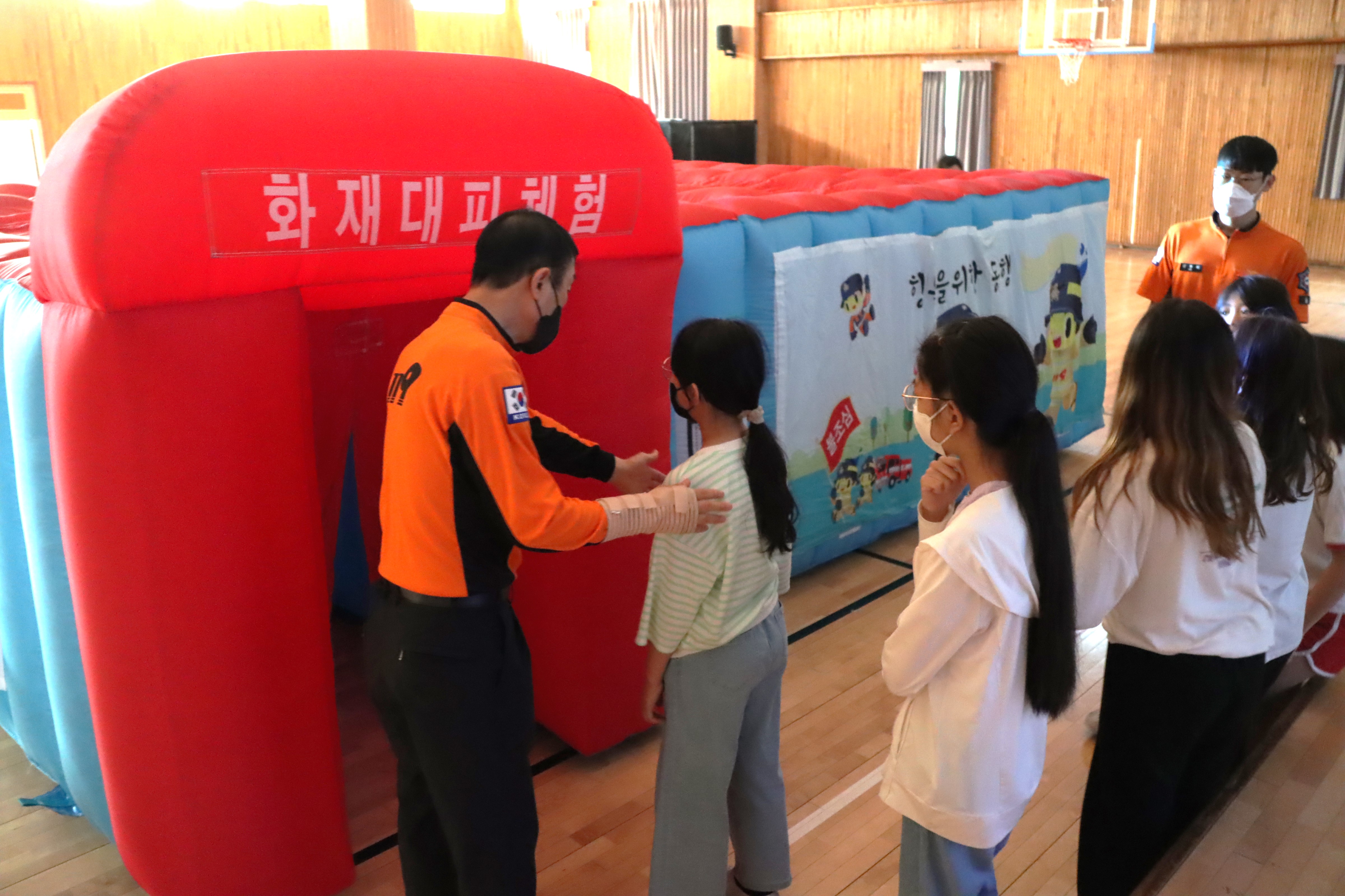 이번 체험장은 ▲CPR 교육 영상 시청 ▲화재 대피요령 VR ▲소화기·심폐소생술 시뮬레이션 게임 등을 운영하며 어린이가 직접 체험하며 안전 대응 능력을 키울 수 있는 경험을 제공했다. 특히 에어바운스 화재대피체험존을 운영해 농연으로 인한 시야 확보의 어려움을 극복하는 체험으로 학생들의 높은 관심을 끌었다.
