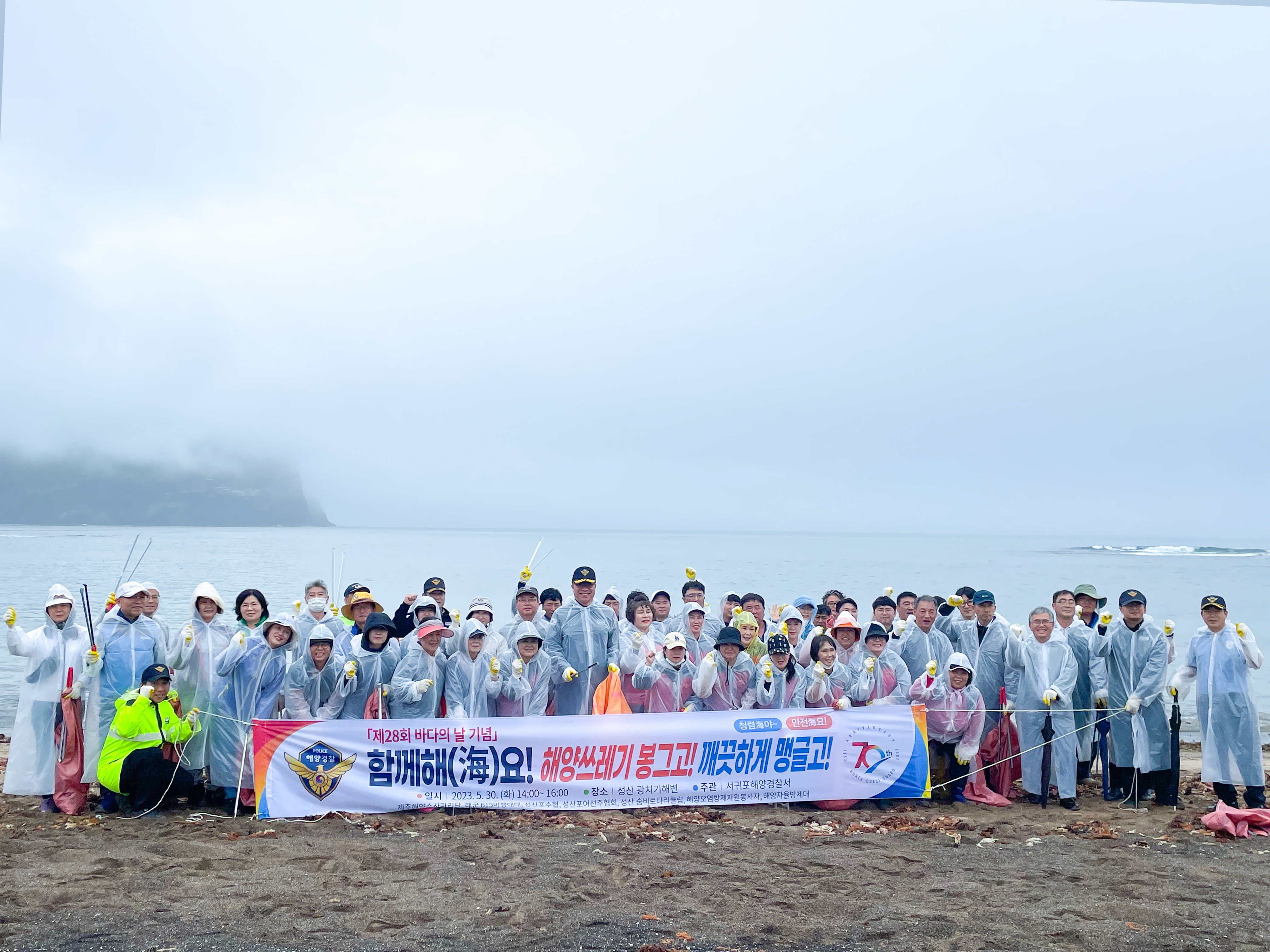 서귀포해양경찰(서장 윤태연)은 오늘(30일) 오후2시 서귀포시 성산읍 광치기해변에서 제28회 바다의 날을 맞이하여 민·관 합동으로 연안 정화활동을 실시했다.