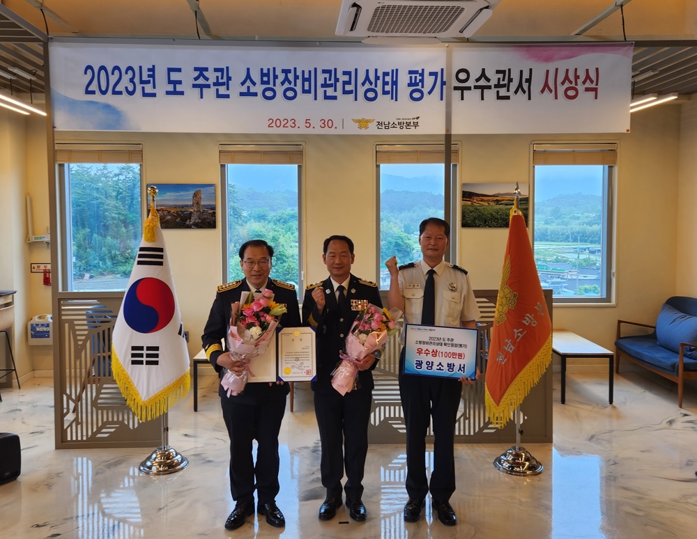 [해륙뉴스1]=서정민기자.광양소방서(서장 서승호)는 5월 30일 전남소방본부에서 개최한 소방장비관리상태 평가 우수관서 시상식에서 종합2위(우수상)를 수상했다고 밝혔다.