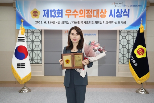 전남도의회 경제관광문화위원회 한숙경 의원(더불어민주당ㆍ순천7)이 지난 1일 ‘제13회 우수의정대상’ 수상자로...