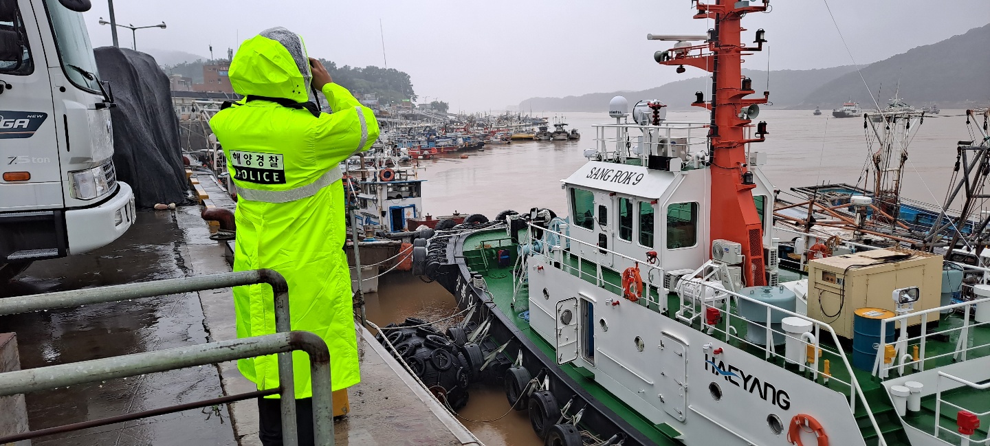 보령해경에서는 파출소 옥외 전광판, 항내 정박선박의 계류상태 점검, 선주·선장 대상 위험안내문자 발송 및