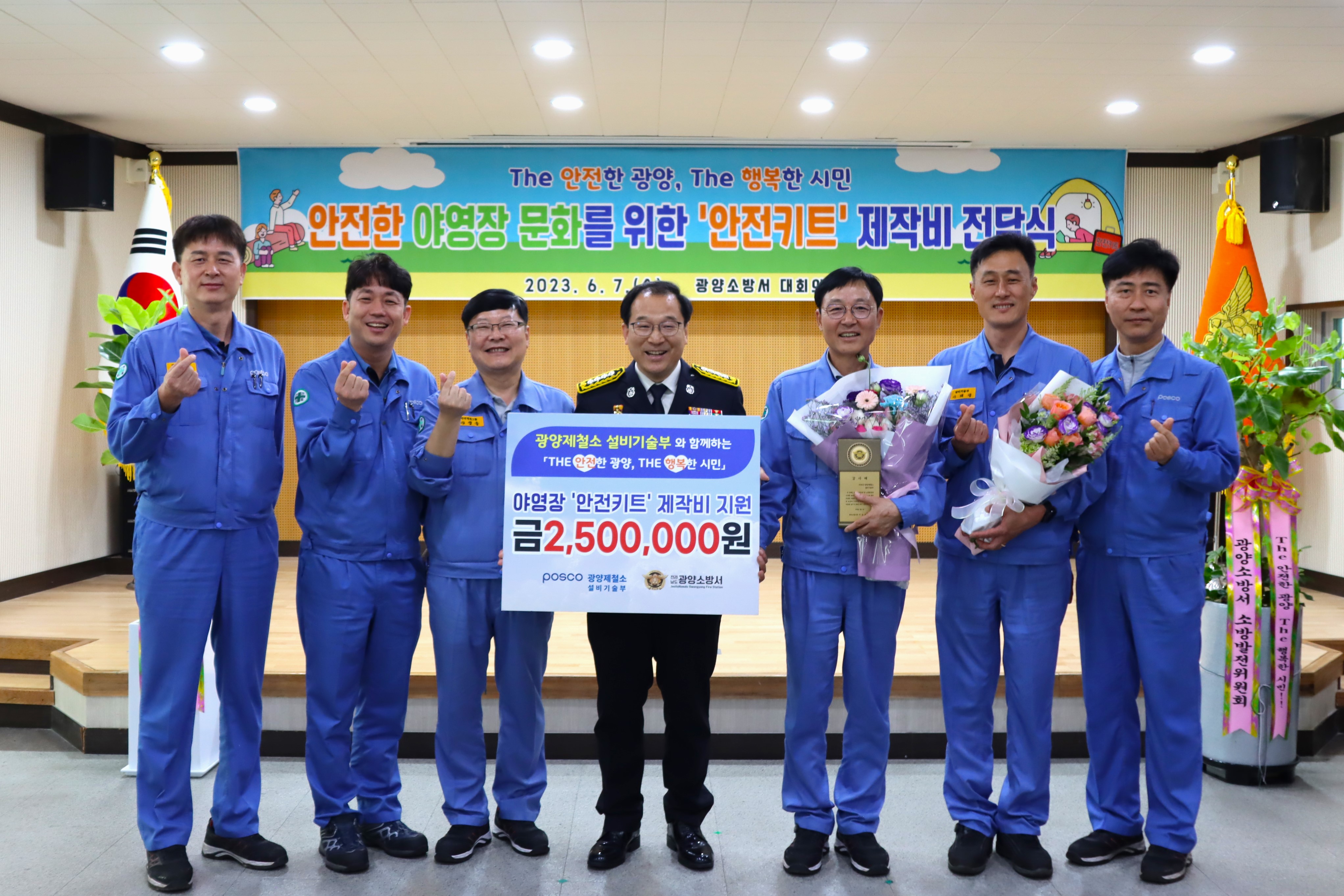 [해륙뉴스1]=서정민기자.광양소방서(서장 서승호)는 늘어가는 야외활동과 야영장 이용에 대비하여 POSCO 광양제철소 설비기술부에서 기부받은 250만 원 상당의 ‘안전키트’를 도민 대상으로 대여해드린다고 전했다.