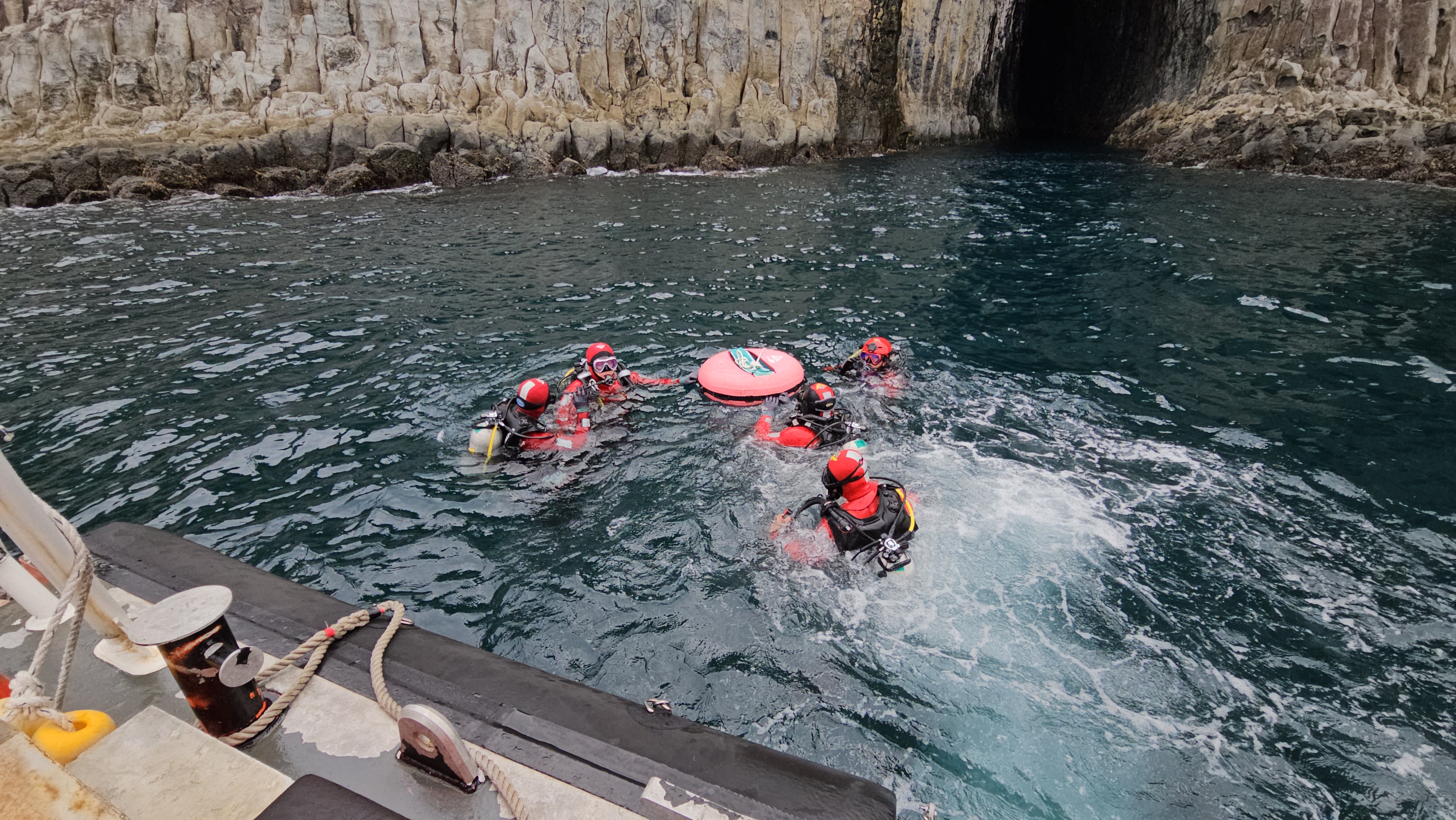 훈련 내용으로는 △수중구조 안전교육 △외돌개 해식동굴 고립자 발생을 가정한 인명구조 훈련 △난파선 대상 수중 선박수색 △구조용 동력서프보드 운용술 등 이다.