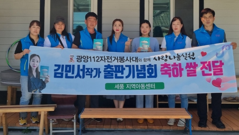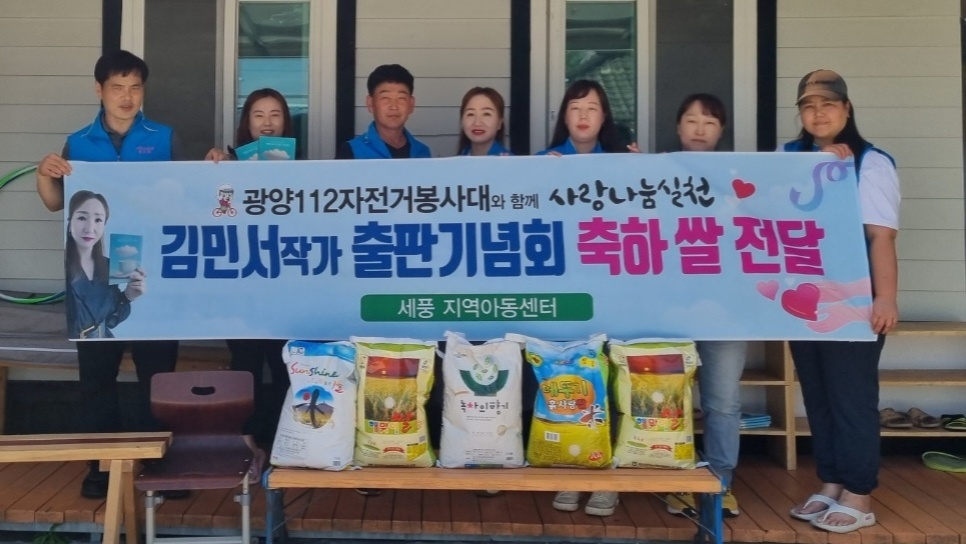 이때 저자 김민서 작가의 출판기념회에 후원 물품으로 들어온 쌀을 광양시 세풍지역아동센터(센터장 이윤정)를 찾아가 기증하였다.