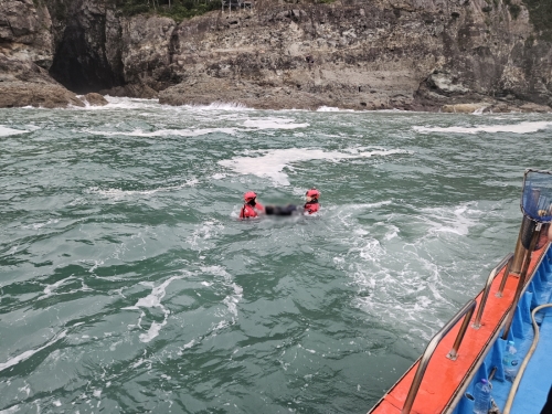 여수해경이 해상에 추락한 낚시객을 구조중이다(사진=여수해경) [해륙뉴스1]김동환기자=여수해양경찰서(서장 박제...