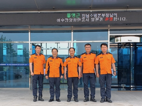 [해륙뉴스1]=서정민기자.광양항·대형공사장·반지하 침수우려건물 풍수해 안전대책 점검 홍영근 전남소방본부장이 ...