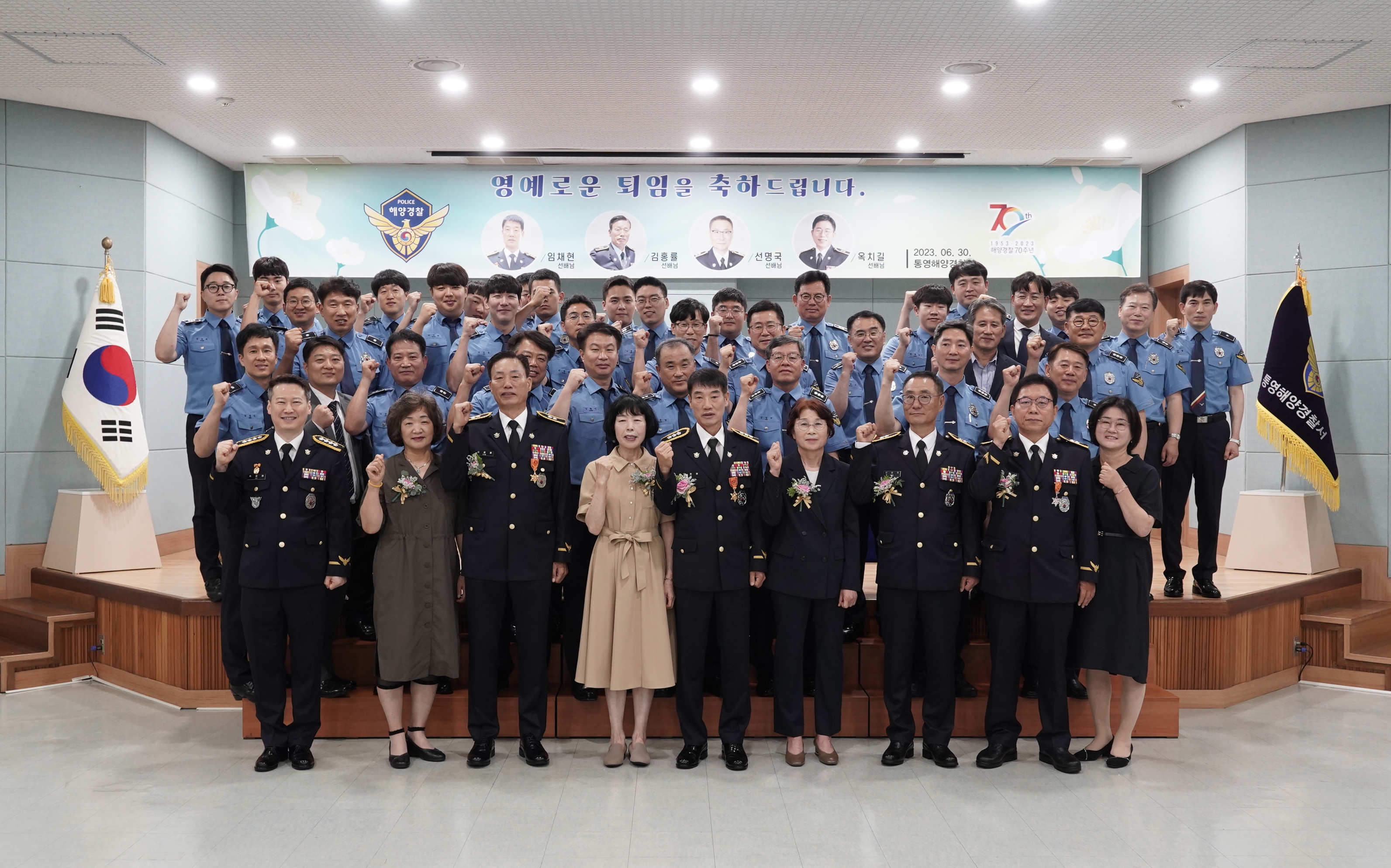통영해양경찰서(서장 주용현)는 오늘(30일) 30년 넘게 바다를 지켜온 해양 경찰관 4명(경정 임채현, 경감 김홍률, 경감 선명국, 경감 옥치길)에 대한 정년퇴임식을 가졌다.