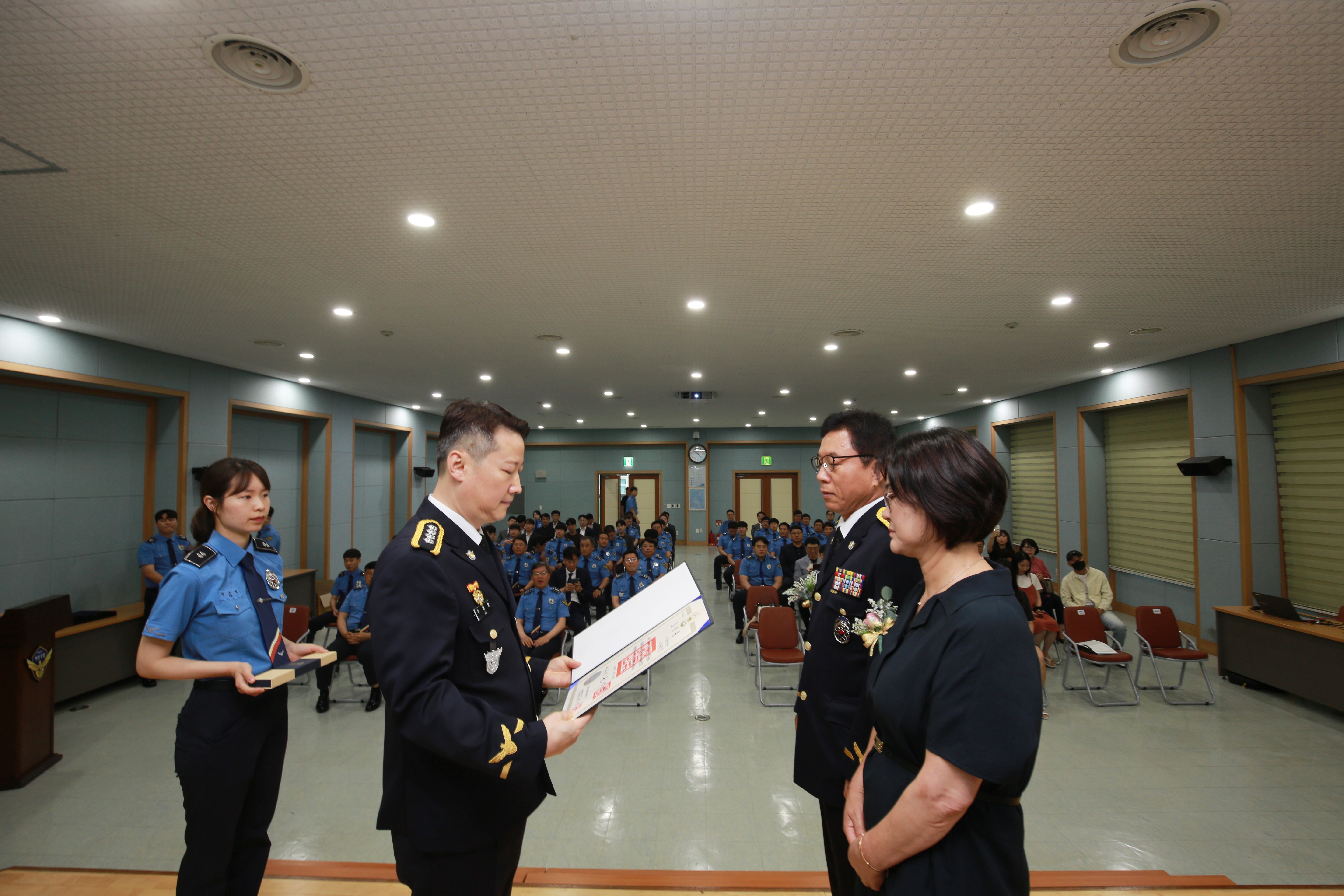 이번 퇴임식은 해양경찰관으로 거친 파도와 싸우며 국가와 국민을 위해 헌신해온 퇴직자들의 공로를 기리며 정부포상(훈장)과 재직기념패를 수여 하였고 오랜 기간 공직의 길에 전념할 수 있도록 물심양면으로 도와준 배우자에게는 감사하는 마음을 담아 꽃다발을 전달하였다.