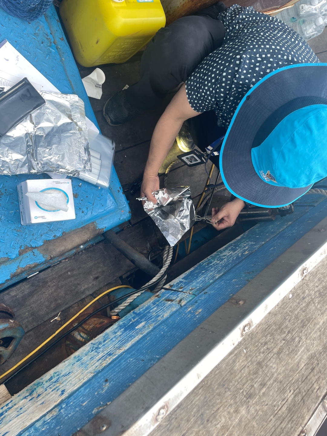 해경은 기름배출 선박을 조사하기 위해 주변 계류선박에 대한 정밀조사(시료채취 등)를 통해