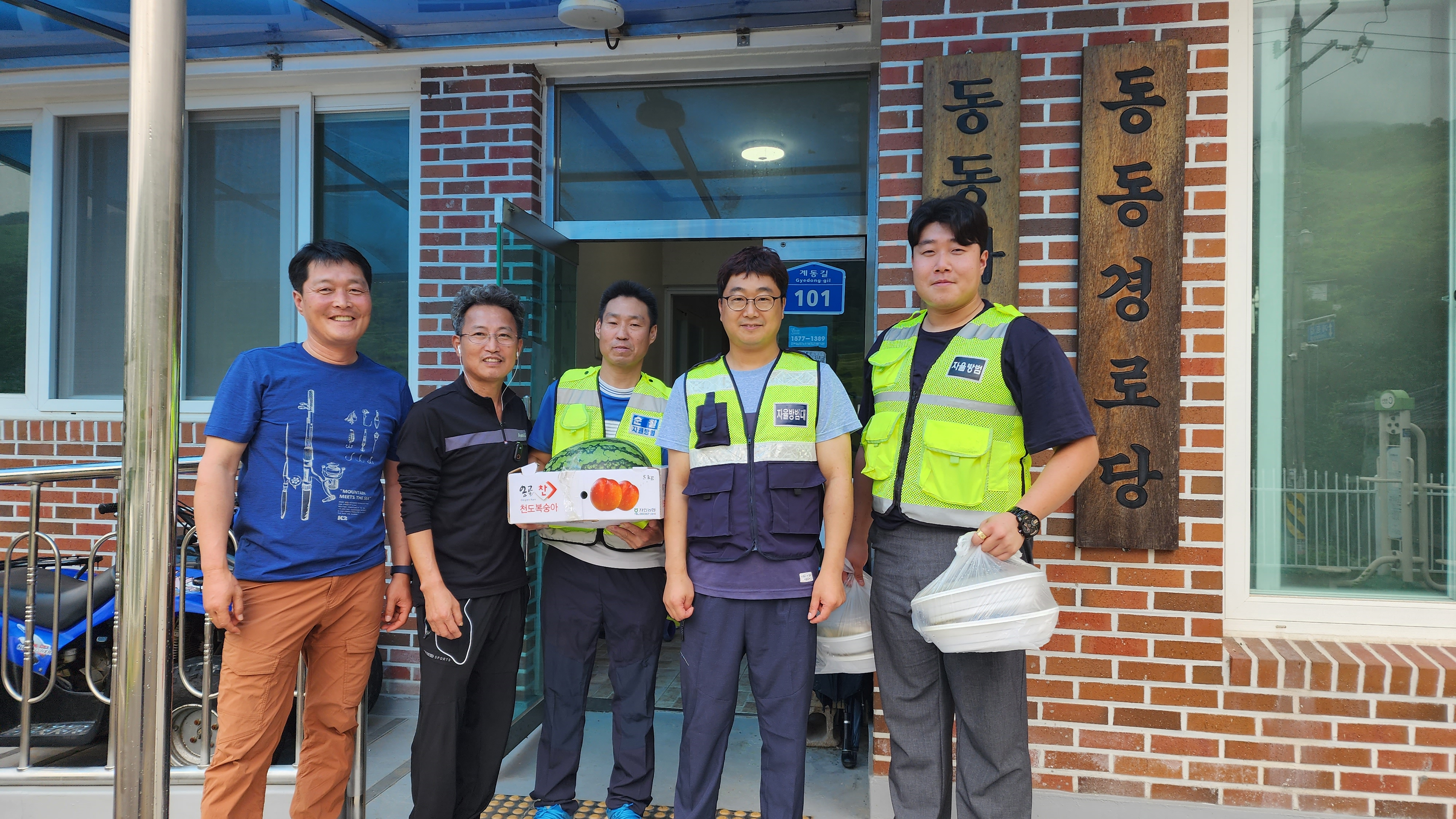 마을에 보양식과 제철과일을 전달받은 경로당 어르신들은 방범대의 뜻깊은 행사에 감사함를 전하였다.
