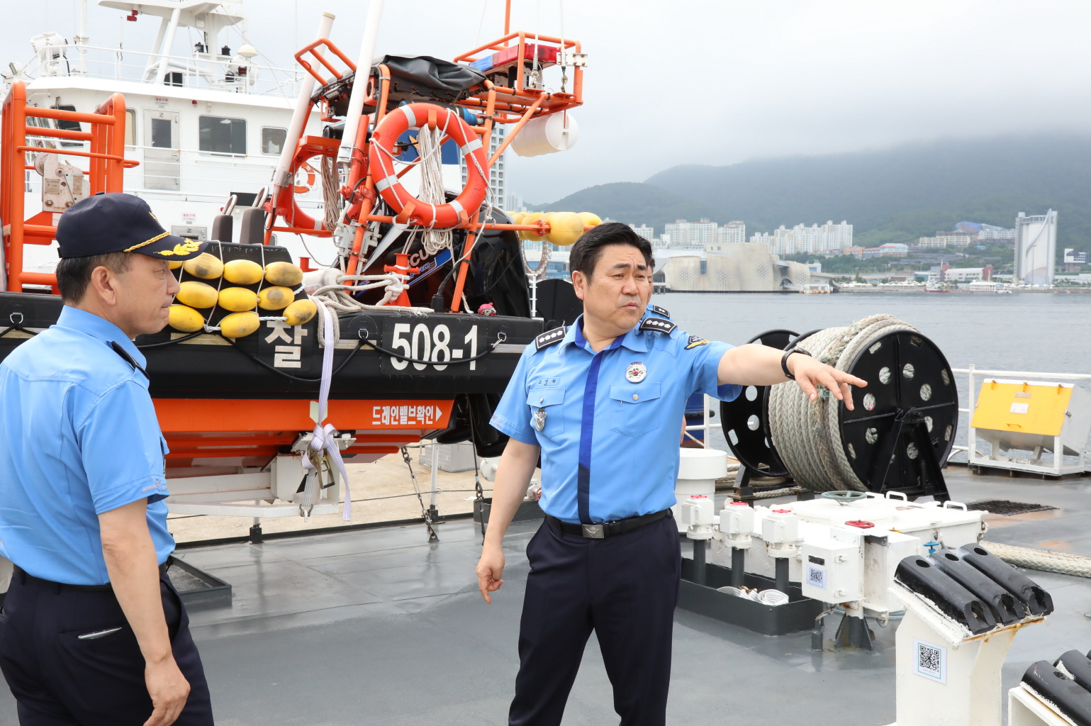 이어, 경비함정이 정박 중인 봉산, 우두리, 신항 전용부두를 방문해 긴급 대응 태세 점검과 함께