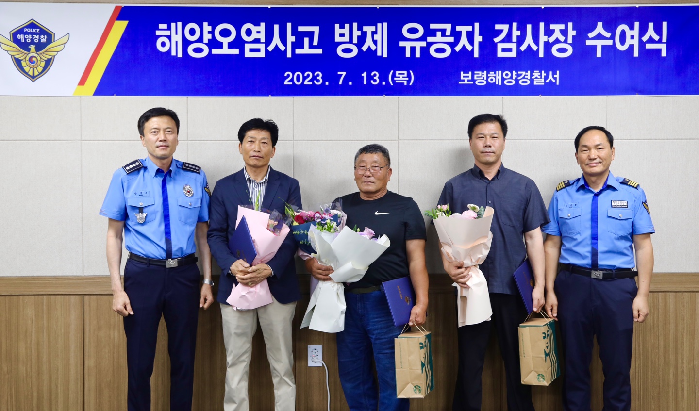 해양환경공단 환경12호 선장 등 6명에 대해 감사장을 전달하고 노고에 감사를 표했다.