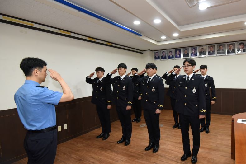 5월부터 10주간의 현장 실습을 마친 8명의 신임 해양경찰관들이 임용식을 가지고 최일선 현장으로