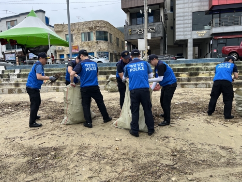 - 집중호우로 인한 거제시 덕포해수욕장 해양쓰레기 수거 봉사활동 진행 - 통영해양경찰서(서장 주용현)는 오늘...