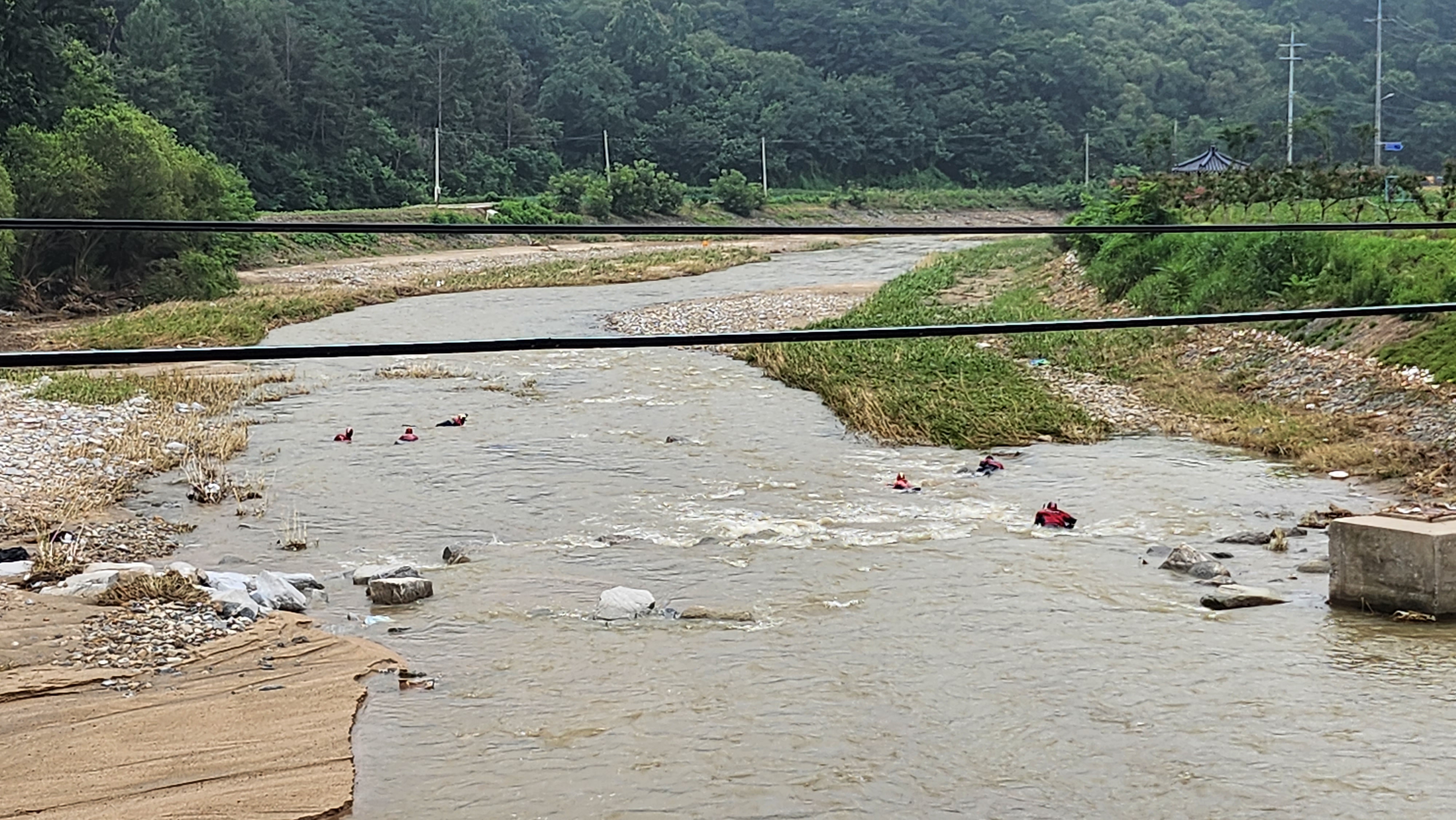 오늘 오전 간방교에서 미호교 전 합류지점까지 약 3km 구간을 수색한 결과,