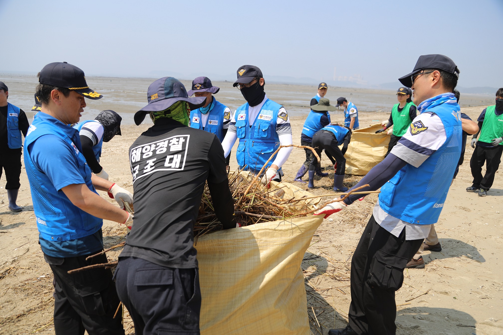 - 인근 해경서와 합동, 금강 하구둑 개방으로 해안가에 유입된 쓰레기 수거-