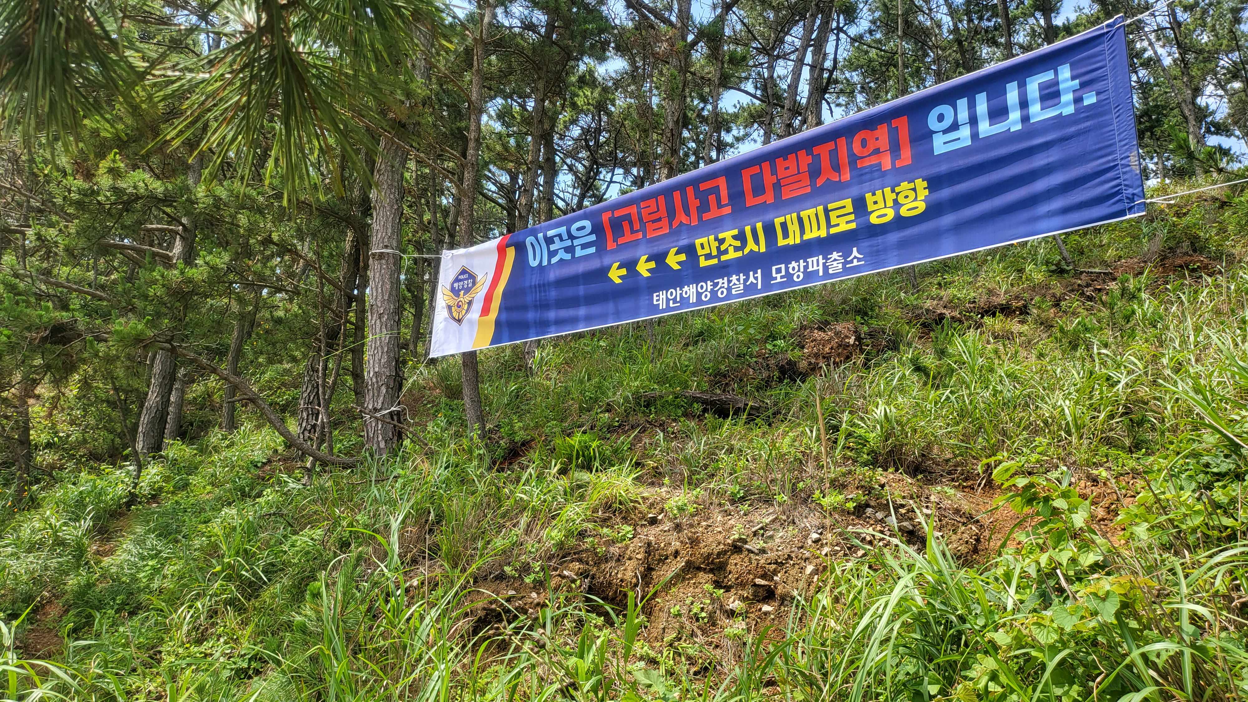 안전 유도로프와 현수막을 설치해 관광객들의 안전 확보에 나섰다.