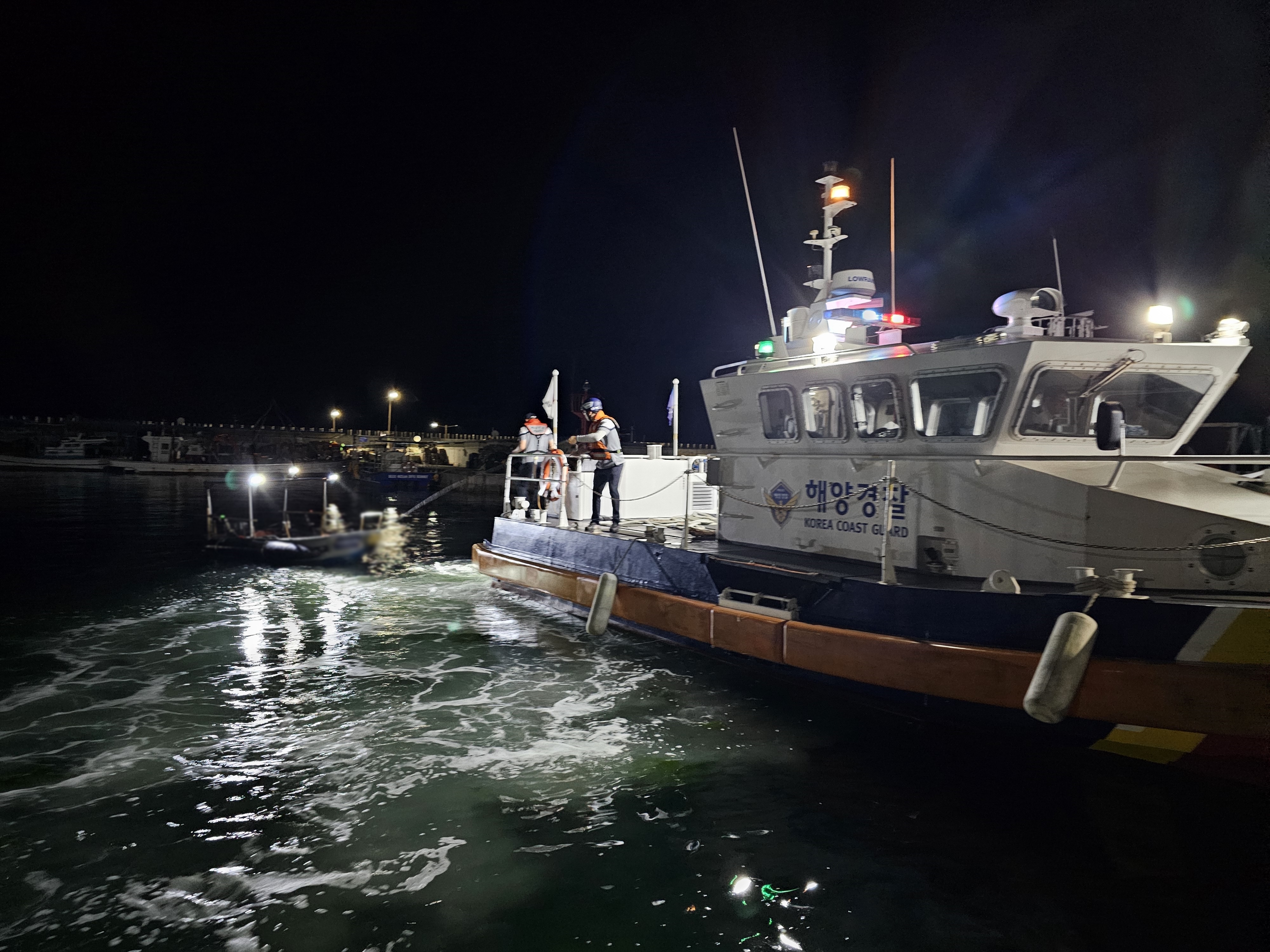 영일만파출소 연안구조정이 용한항으로 안전하게 예인했다.