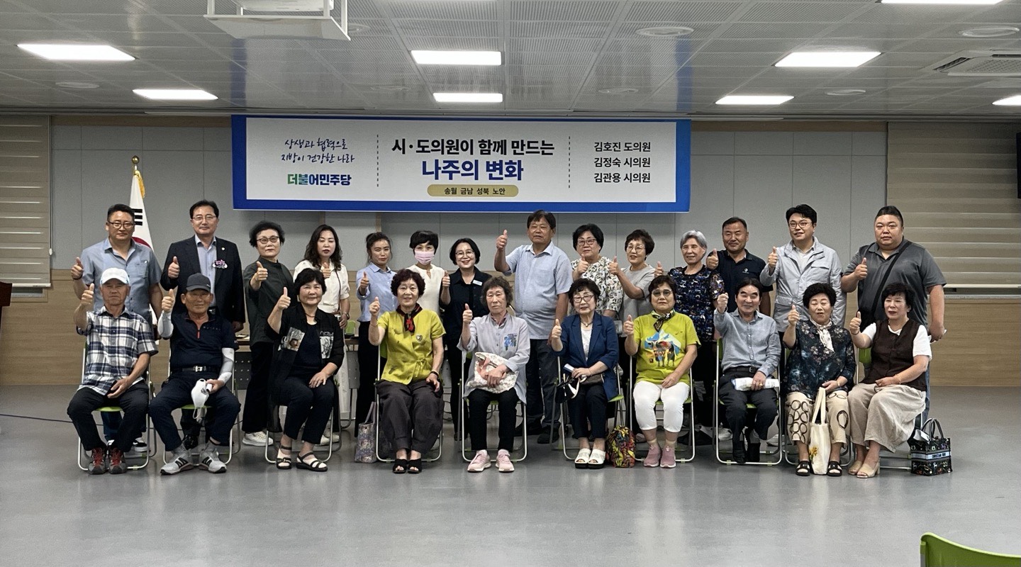 전남도의회 김호진 의원(더불어민주당·나주1)은 지난 1일, 나주시 송월동 행복복지센터 2층 회의실에서 송월동 주민들과 소통하는 시간을 가졌다.