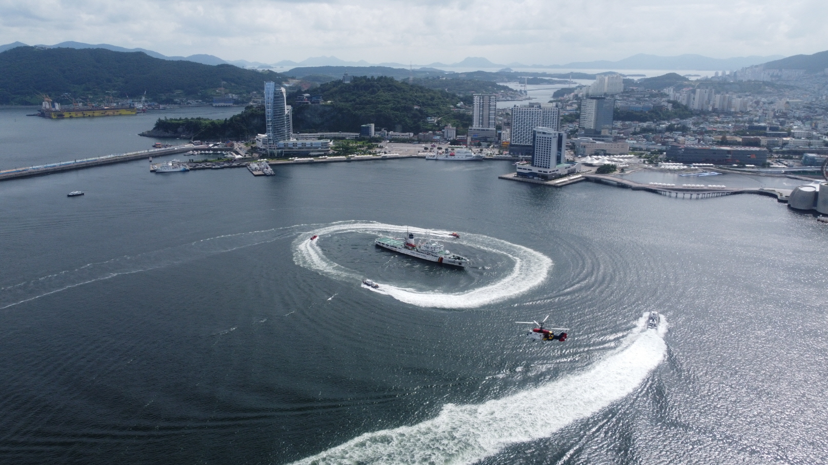 이번 훈련은 경비함정과 관계기관 선박 14척, 헬기 등이 동원되어 실제 기동훈련으로 진행되었으며, 미식별 선박을 발견하여 추적 및 차단하는 항만 방호 훈련을 시작으로 침투선박이 여객선을 납치하는 해양 대테러 훈련 순으로 이뤄졌다.
