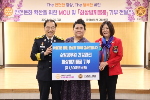 [해륙뉴스1]=서정민기자.광양소방서(서장 서승호)는 국제로타리 3610지구 제5지역 광양퍼플로타리클럽과 소방...
