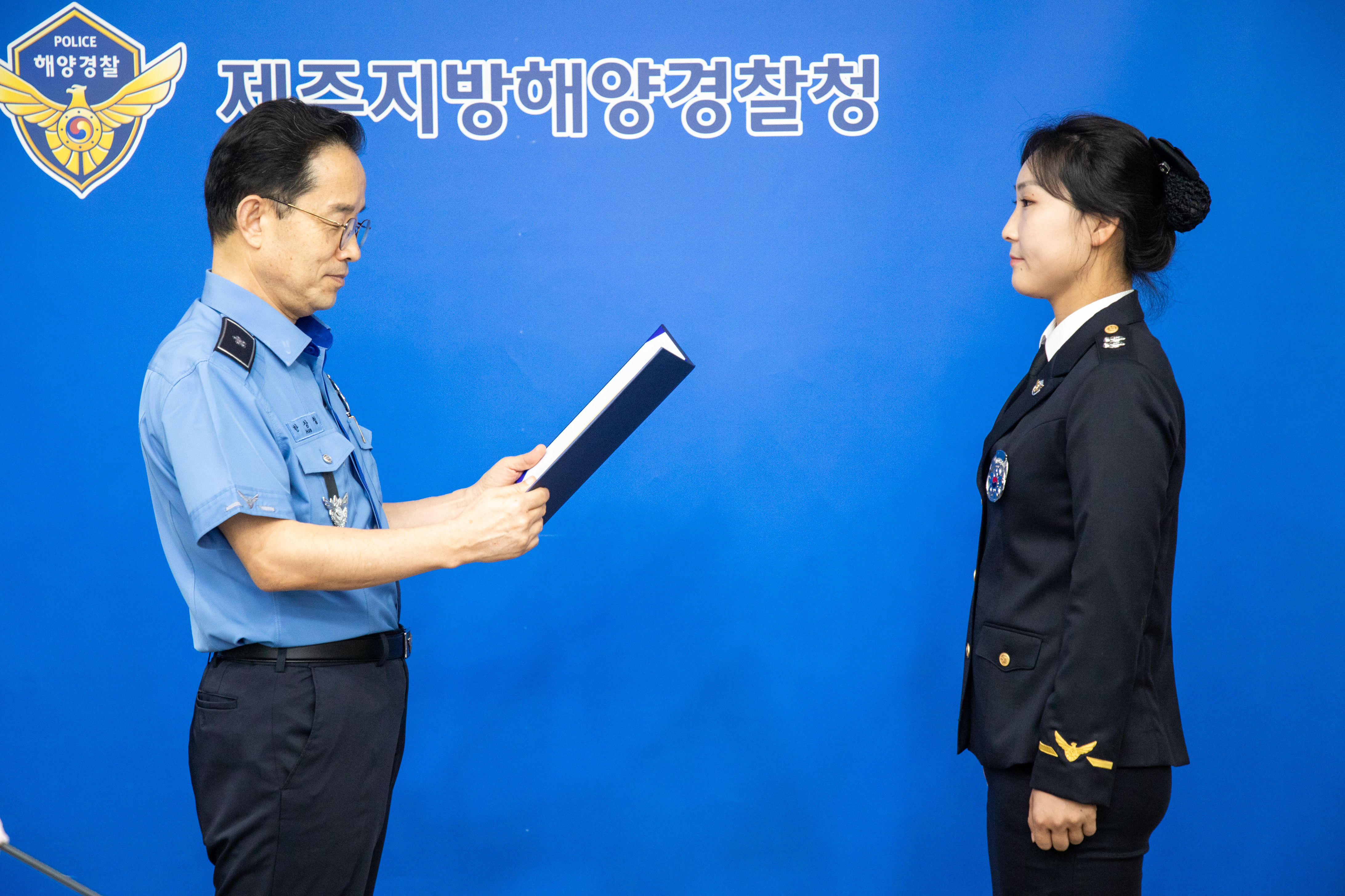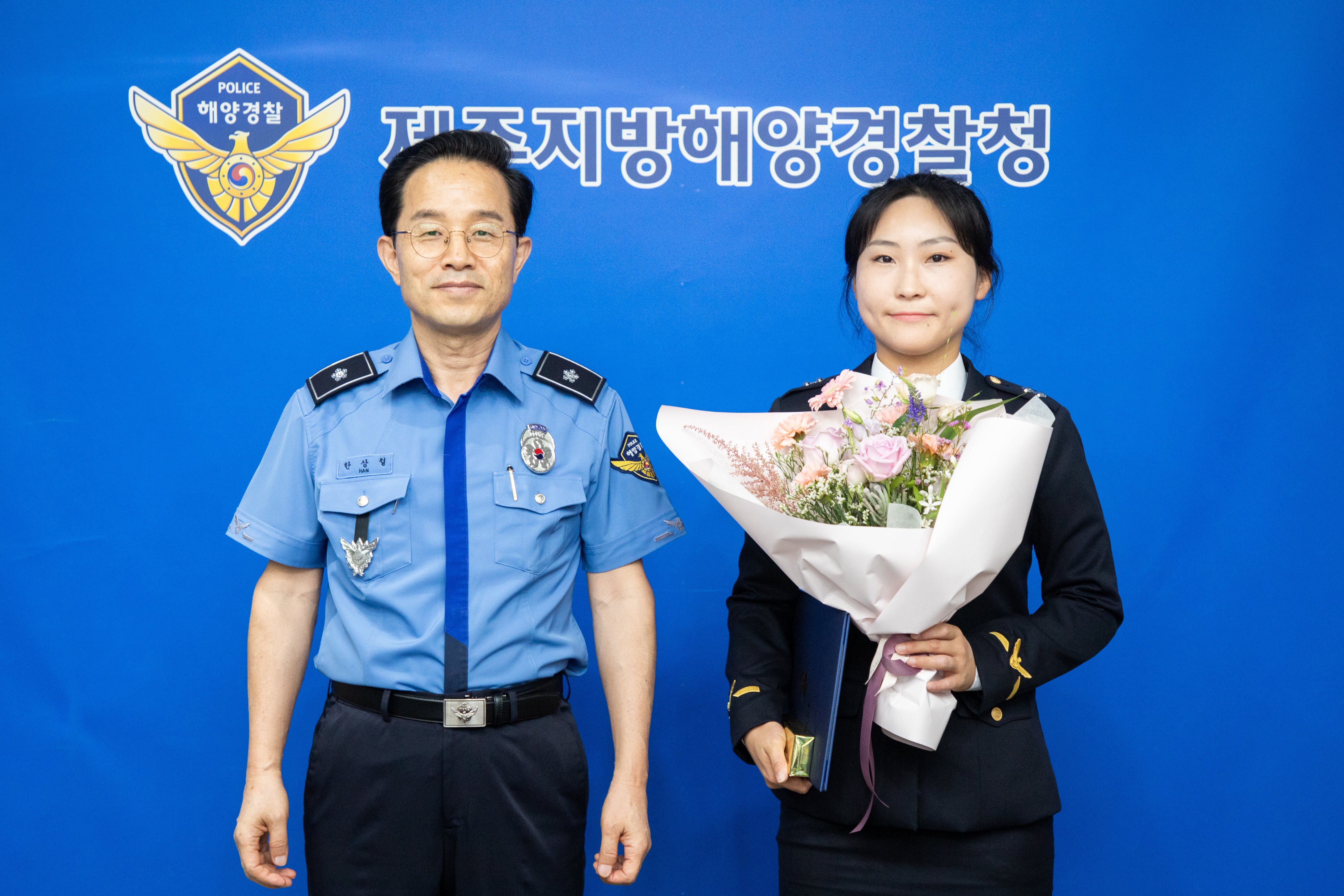 제주지방해양경찰청(청장 한상철)에서는 오늘(28일) 항공기 내에서 발생한 응급상황에서 신속한 응급처치로 국민의 생명을 구한 해양경찰관에게 제주지방해양경찰청장 표창을 수여했다고 밝혔다.