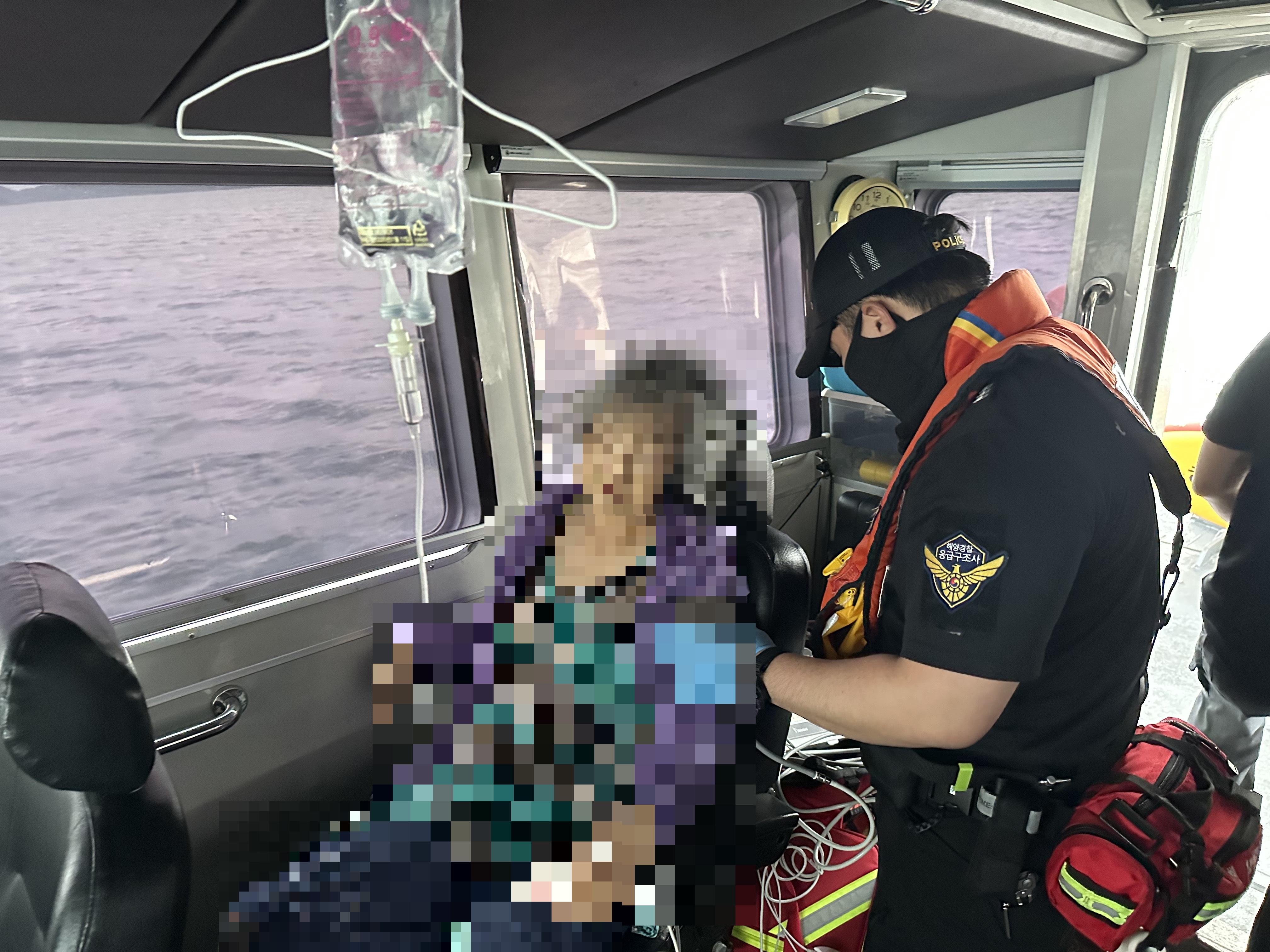 목포해경은 육지로 긴급 이송이 필요하다는 병풍도 보건소장의 의견에 따라 연안구조정을 이용,