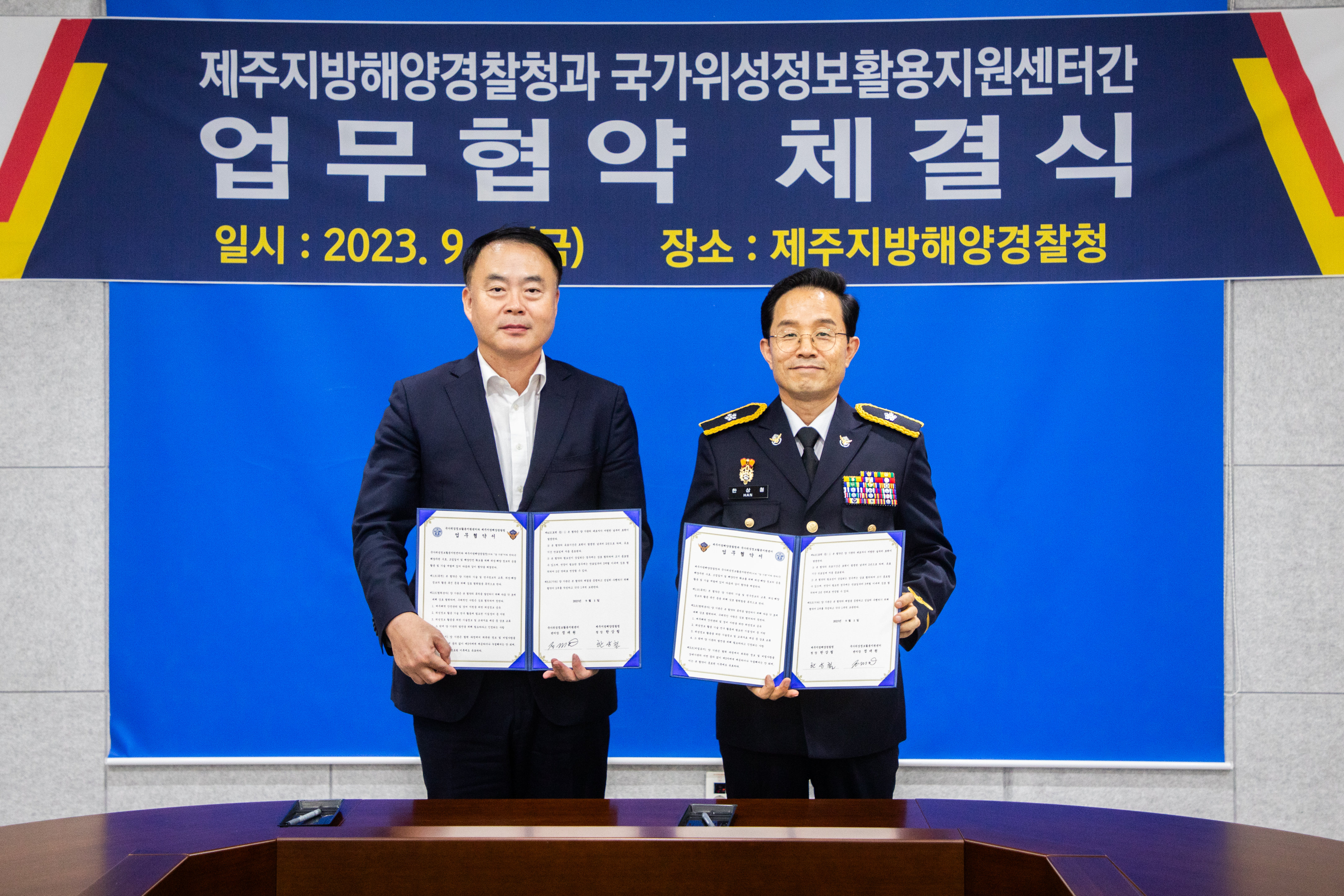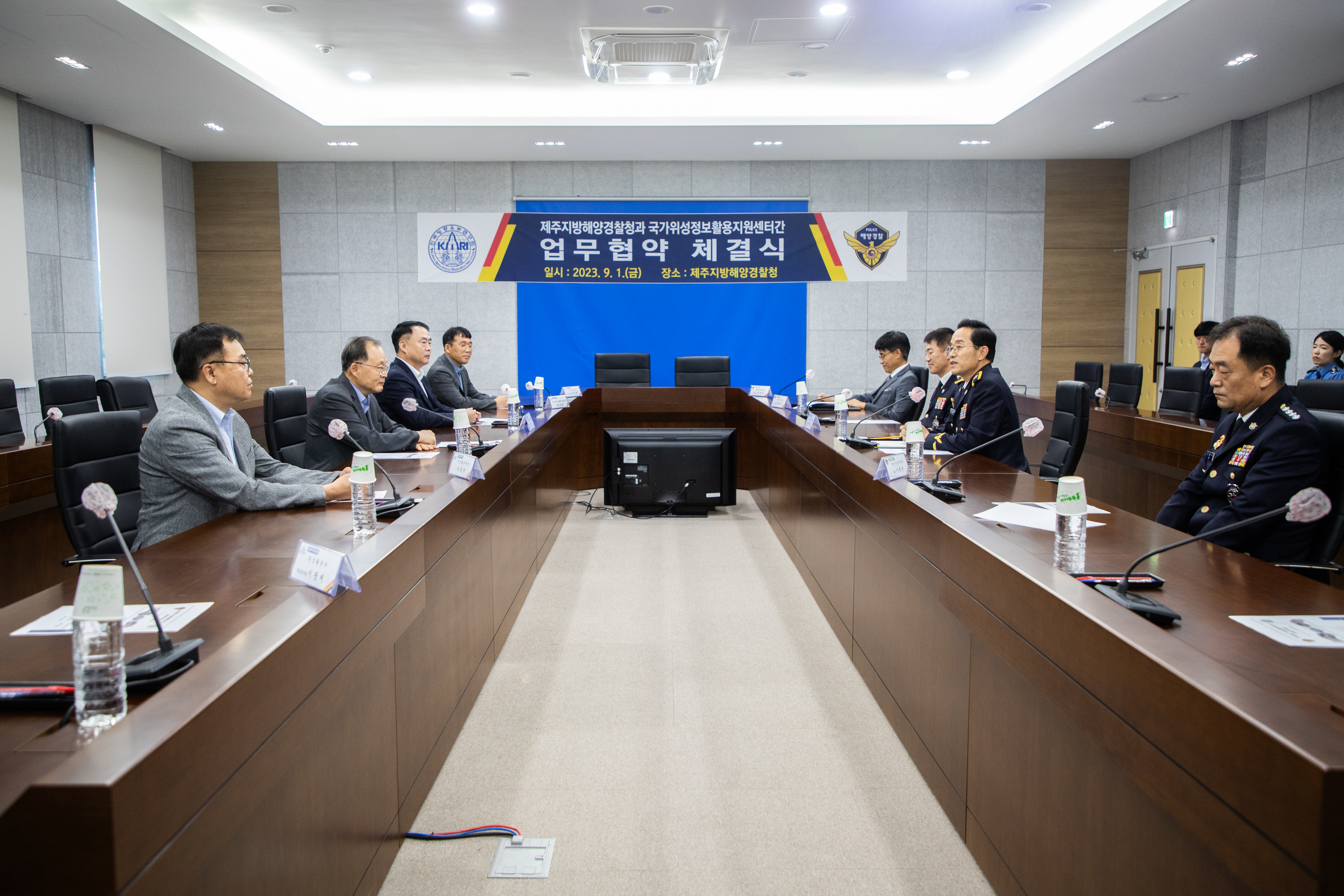 제주지방해양경찰청에 따르면, 오늘(1일) 오후 2시 제주해경청 대회의실에서 한상철 제주해경청장을 비롯한 정대원 국가위성정보활용지원센터장 등 관계자 총 10여 명이 참석한 가운데, 위성과 해양정보를 공유하고 기술 개발을 위한 업무협약을 체결했다.