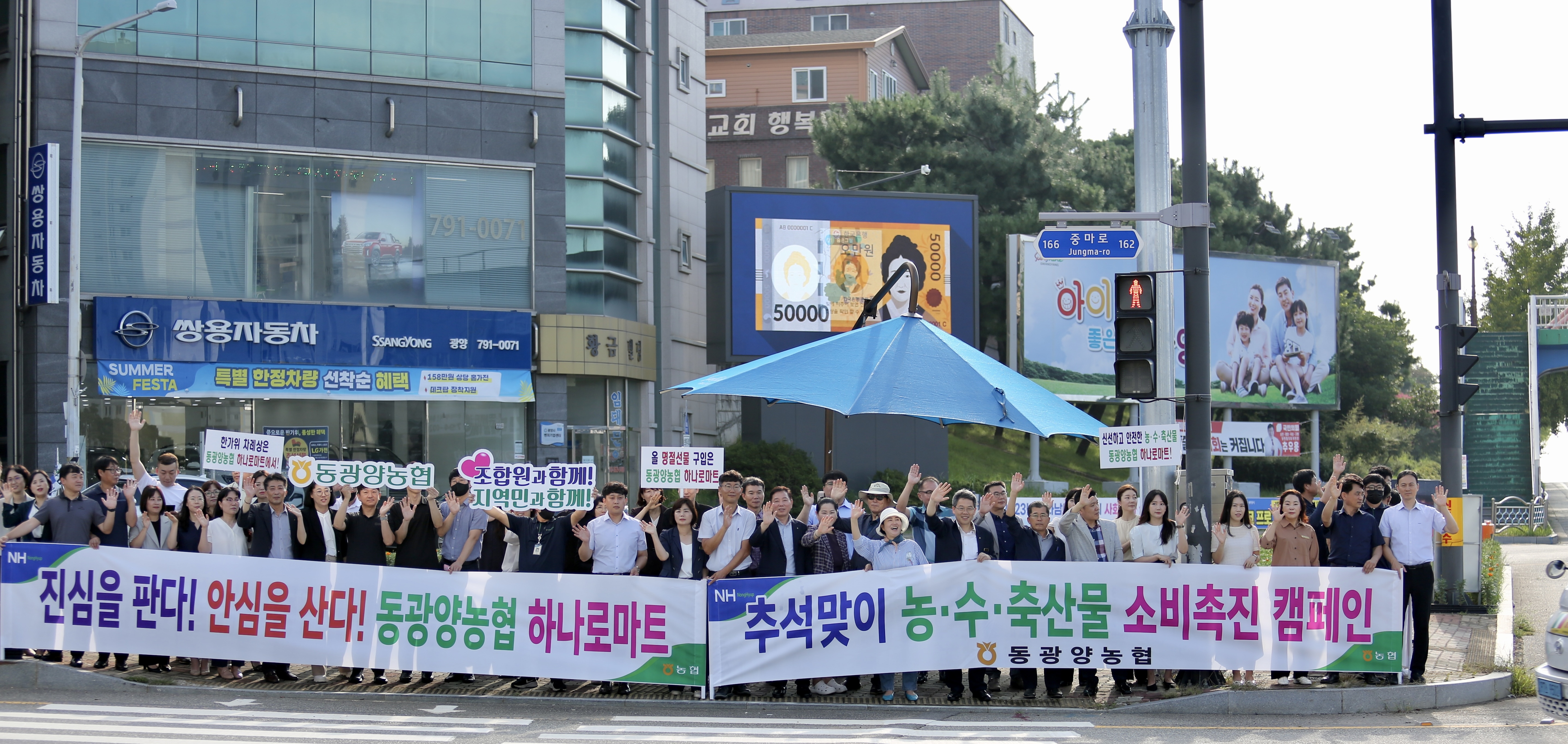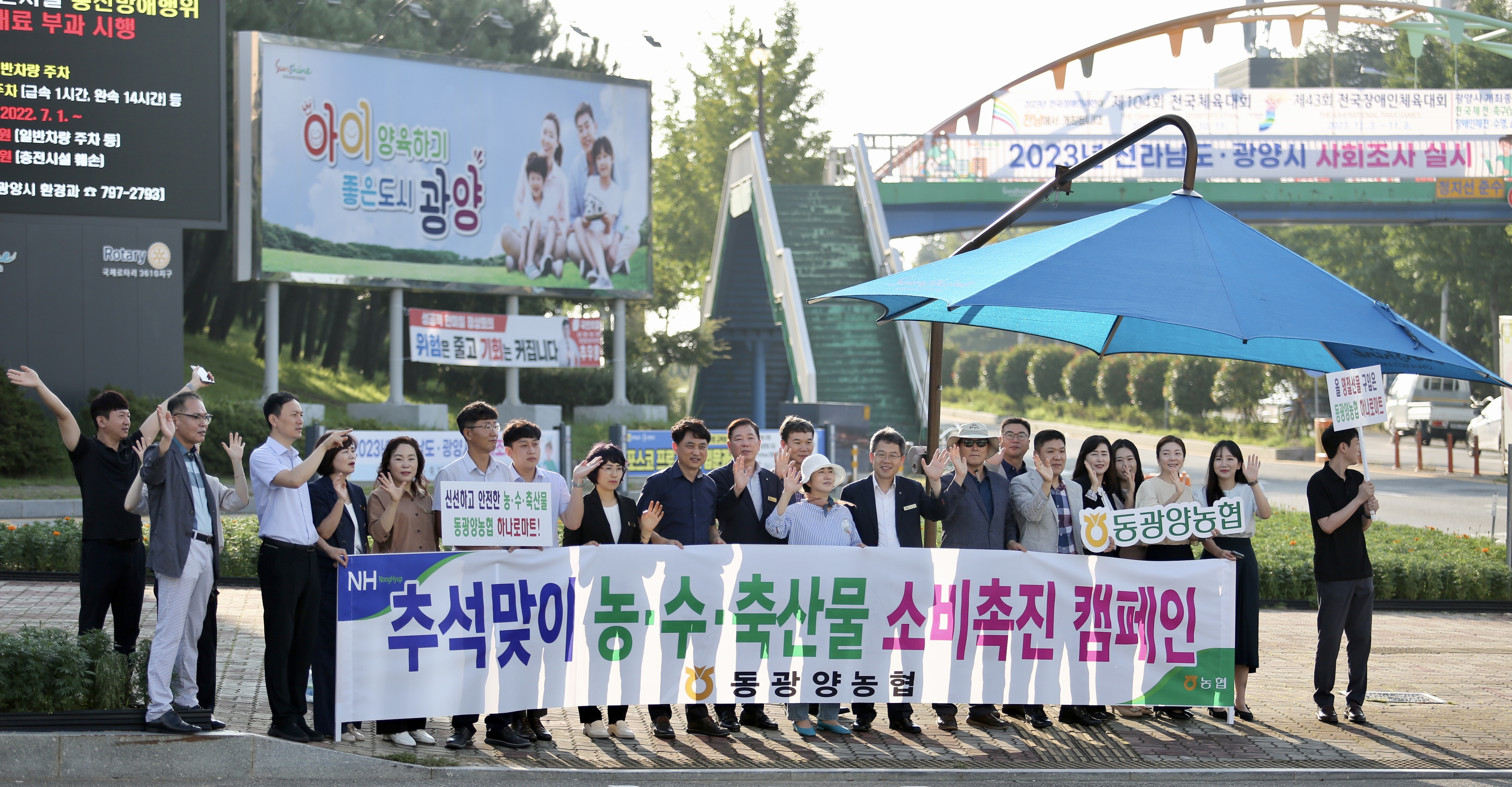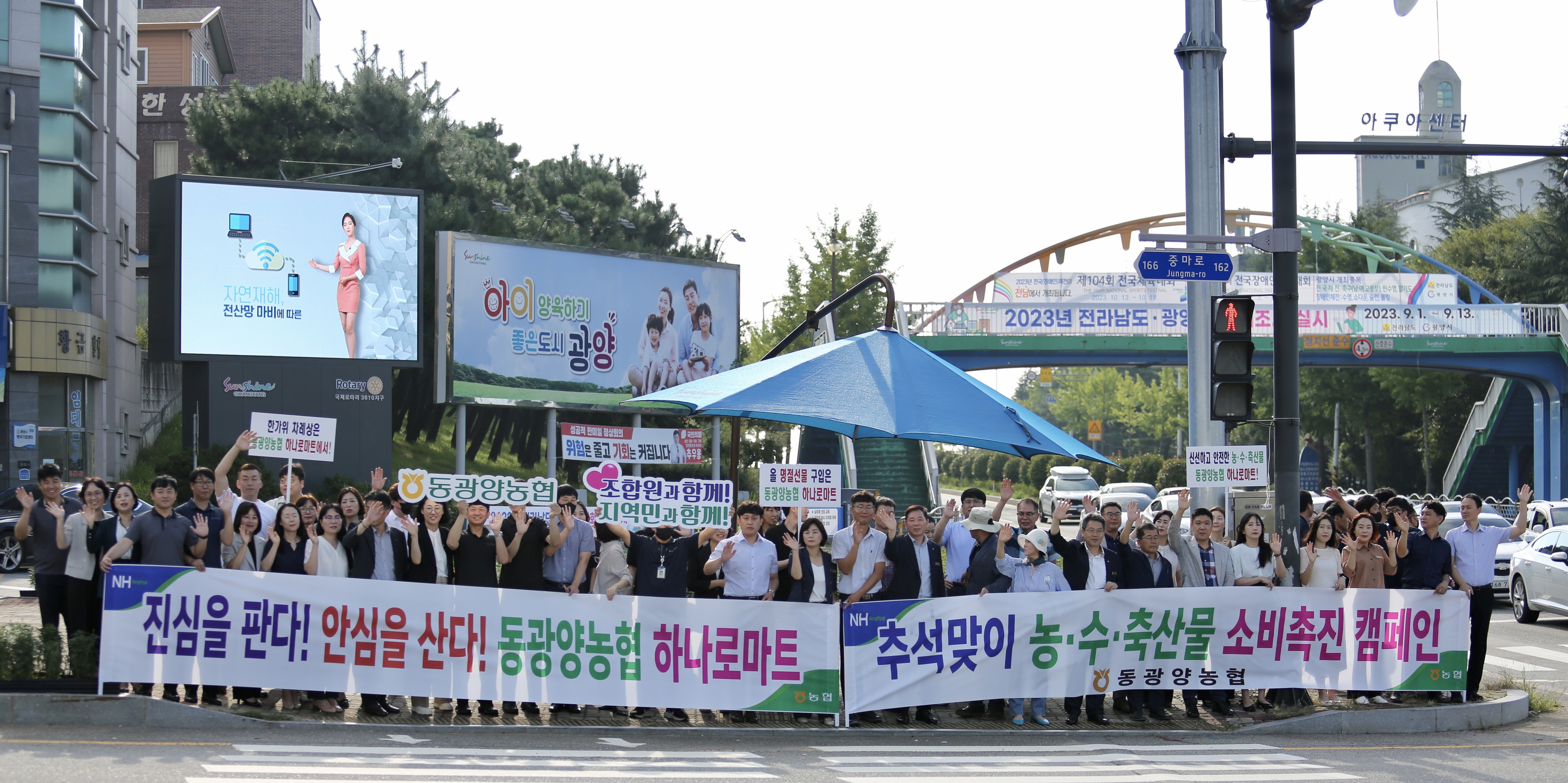 동광양농협(조합장 이돈성)은 지난 4일 광양컨테이너부두 사거리와 금호교차로에서 임직원 100여명이 ’우리 지역 농수축산물 소비 활성화‘ 거리 캠페인을 펼쳤다.