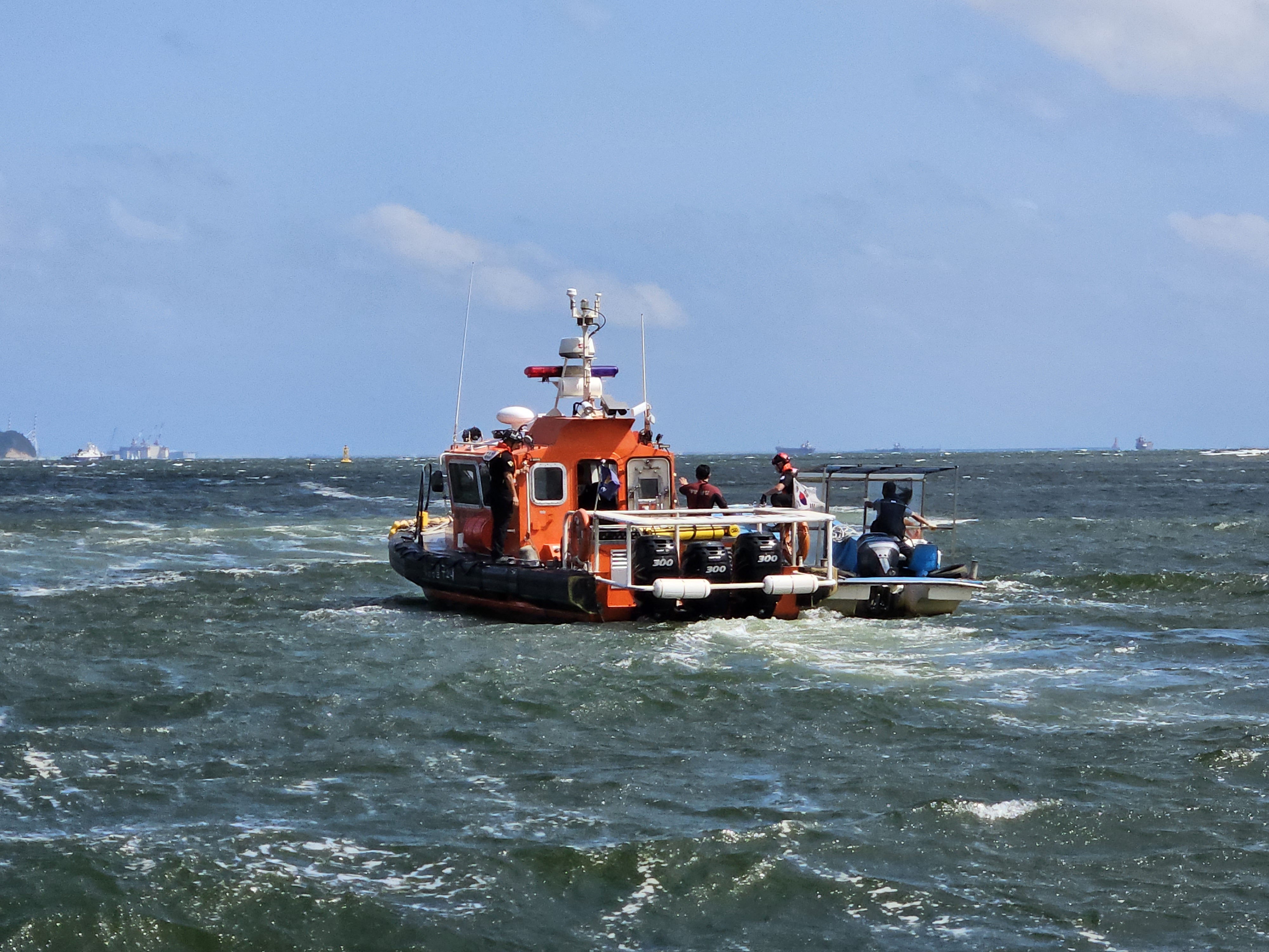 A호에 줄을 걸고 형산강 하구 쪽에 있는 형산강 슬립웨이(동력수상레저기구 물양장)까지 안전하게 예인했다.