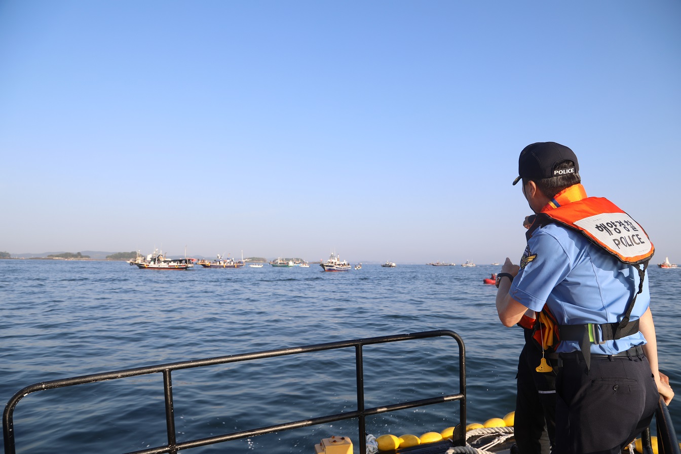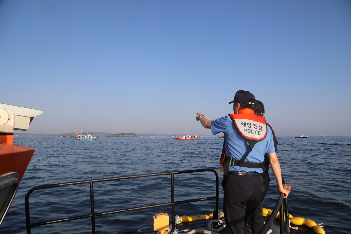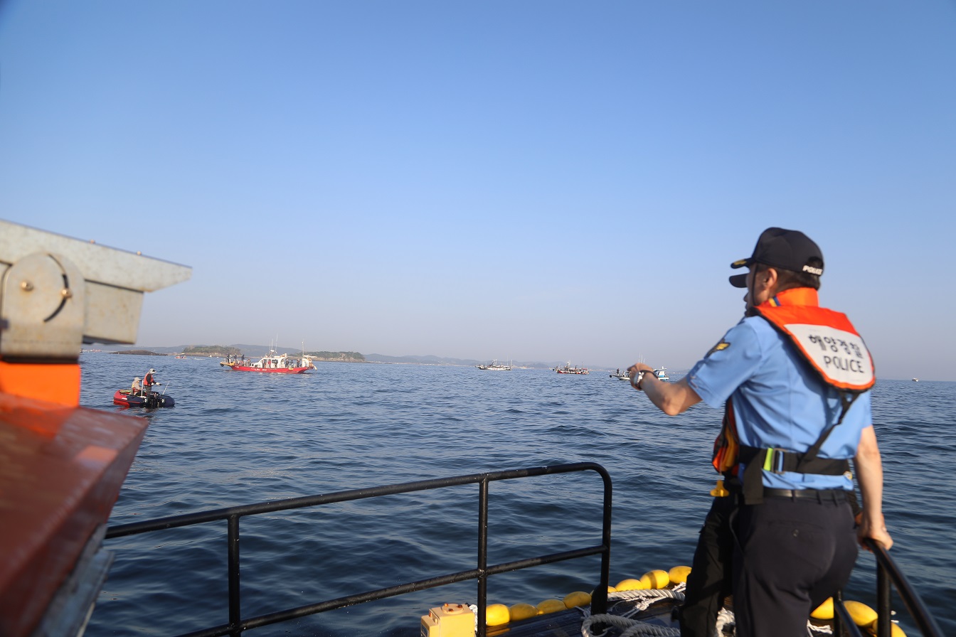 지난 9일(토) 해경 고속보트를 탑승하여 대천앞바다 ~ 천수만해역의 주꾸미 조업 밀집해역을 순찰하며