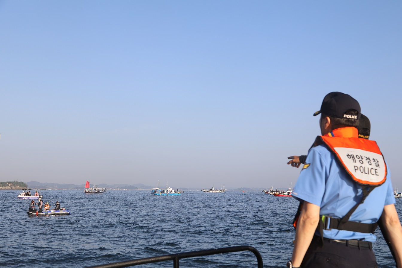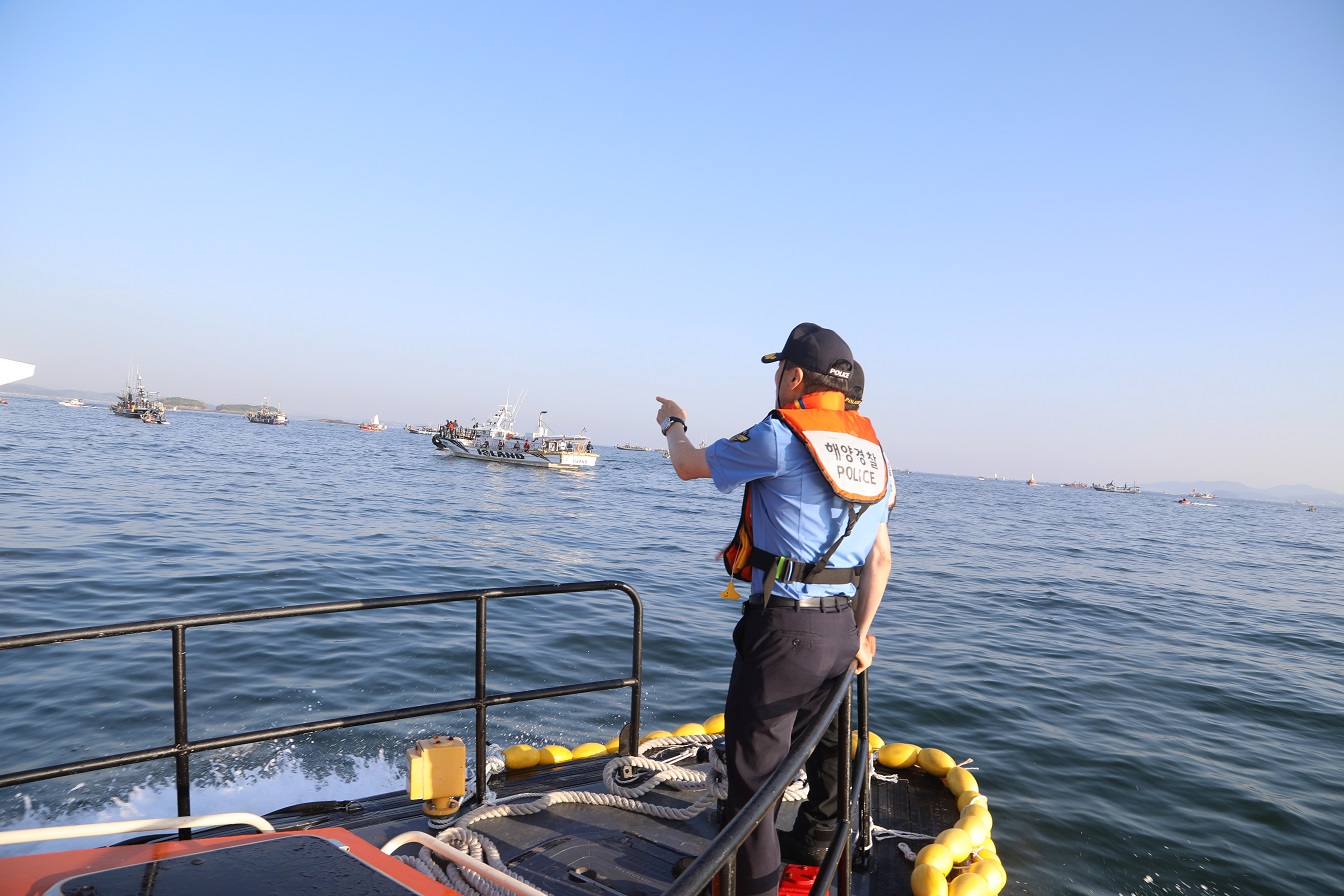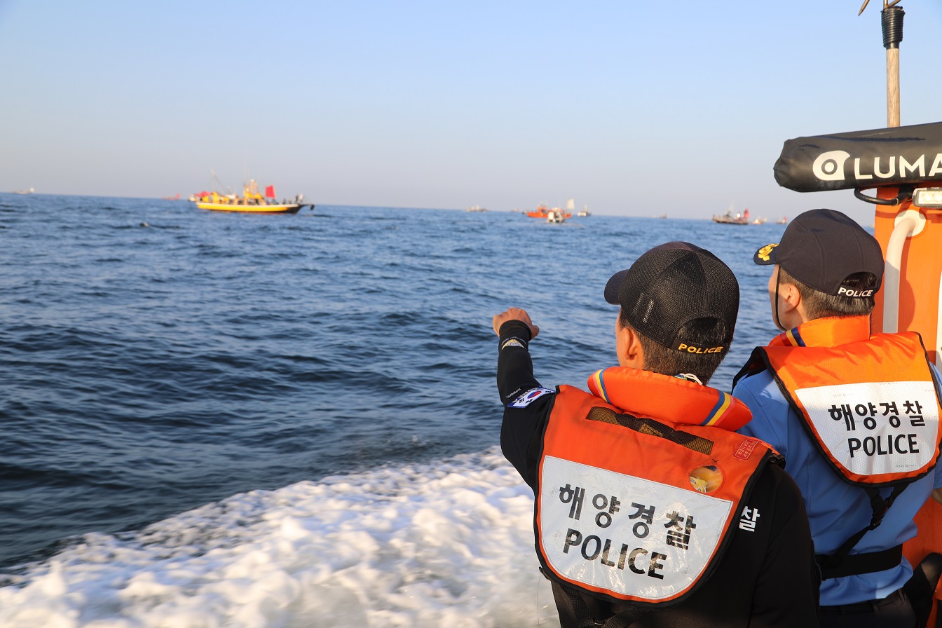 지난 9일(토) 해경 고속보트를 탑승하여 대천앞바다 ~ 천수만해역의 주꾸미 조업 밀집해역을 순찰하며