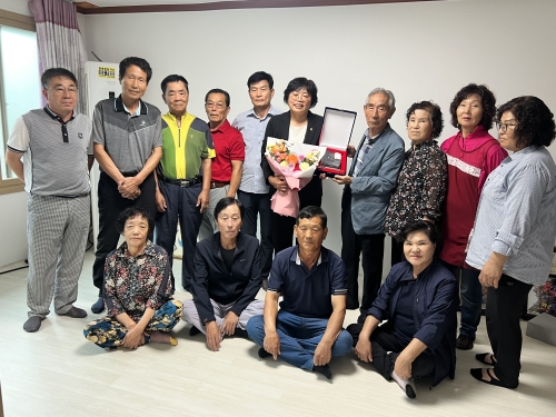 사진 설명 전남도의회 장은영 의원(더불어민주당)이 9월 13일 영광 묘량면 삼학리 주민들로부터 지역사회발전 ...