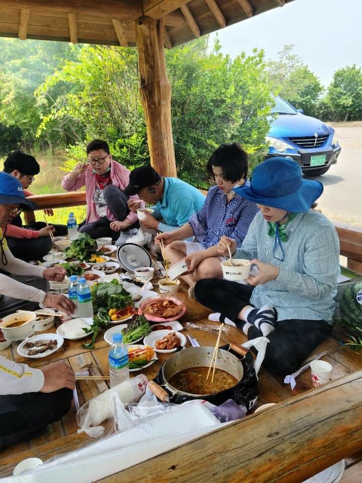 봉사를 마치고 서로가 가져온 먹거리로 꿀맛같은 점심을 먹으면 입맛은 역시 일을 해야 한다며 기뻐한다.