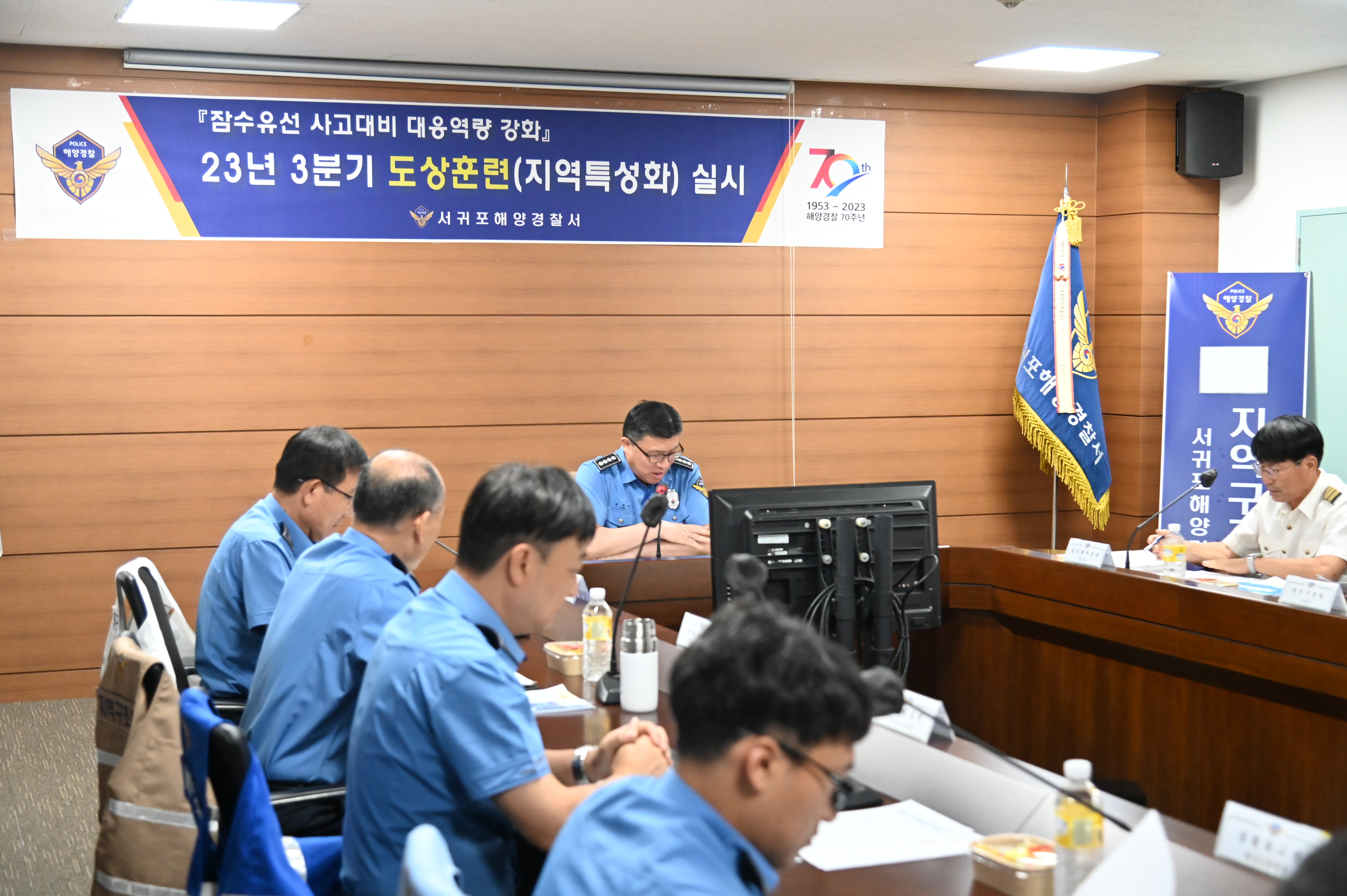 서귀포해양경찰서(서장 윤태연)는 어제(19일) 회의실에서 관광잠수함 사고대비 민관합동 구조역량 강화를 위한 도상훈련을 실시했다.