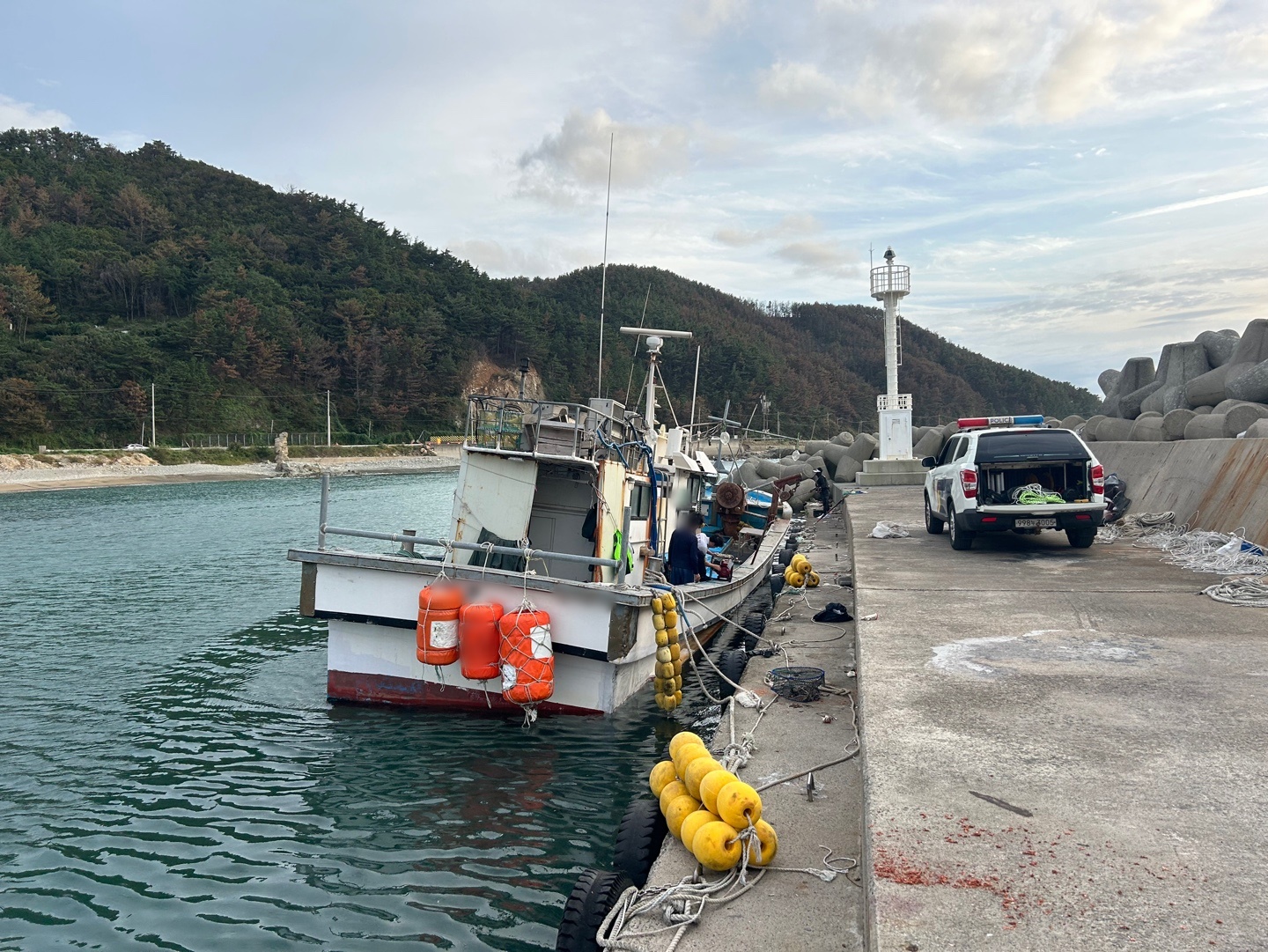현장에 도착한 호미곶파출소 육상팀은 A호가 부두와 계류해 있는 방향으로 조금 기울어져 있고