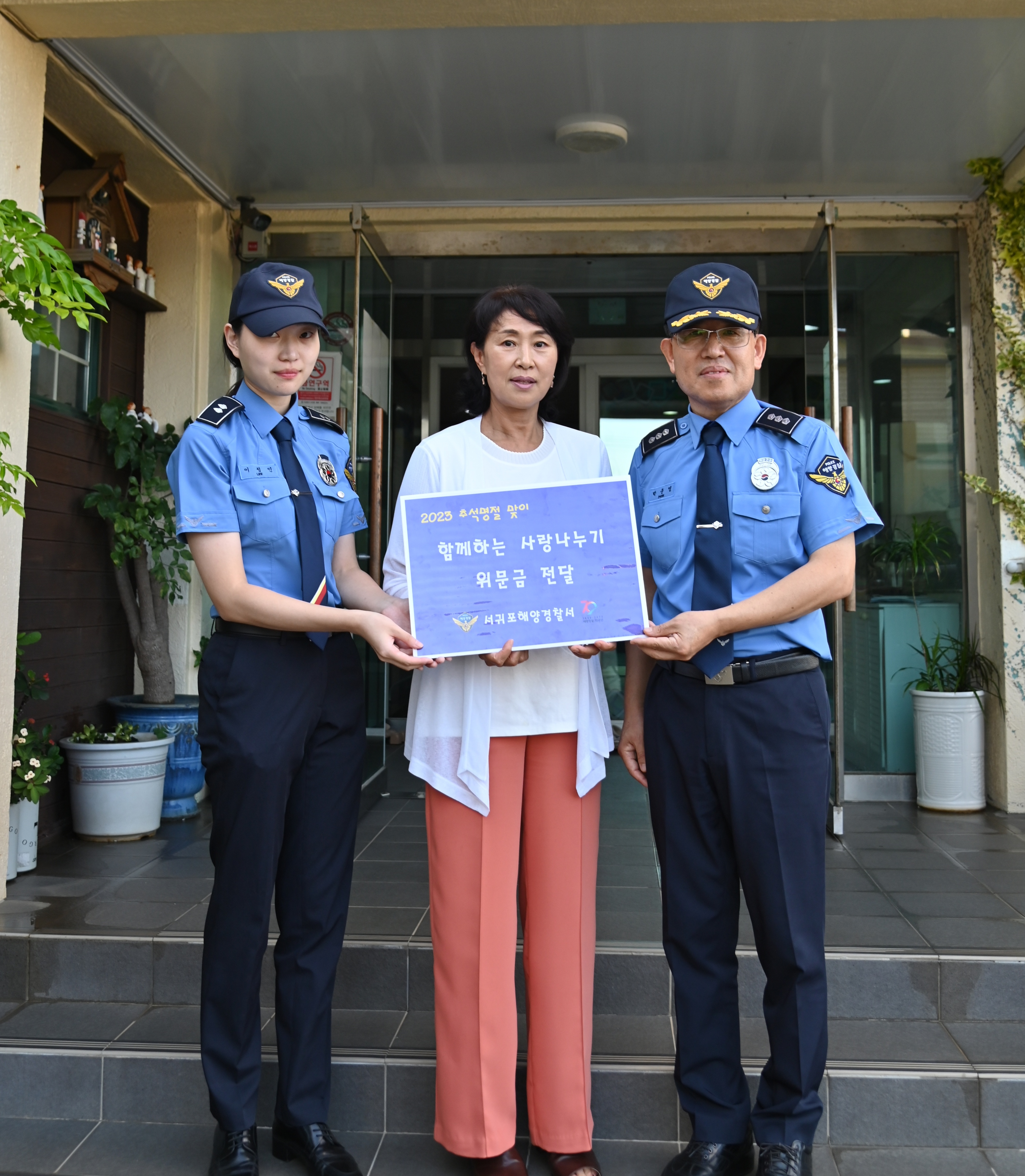 이번 사랑나눔에는 기획운영과장과 서귀포해경서 복지담당 직원이 참석하여, 성금을 전달하고 추석명절 안부인사를 전했다.