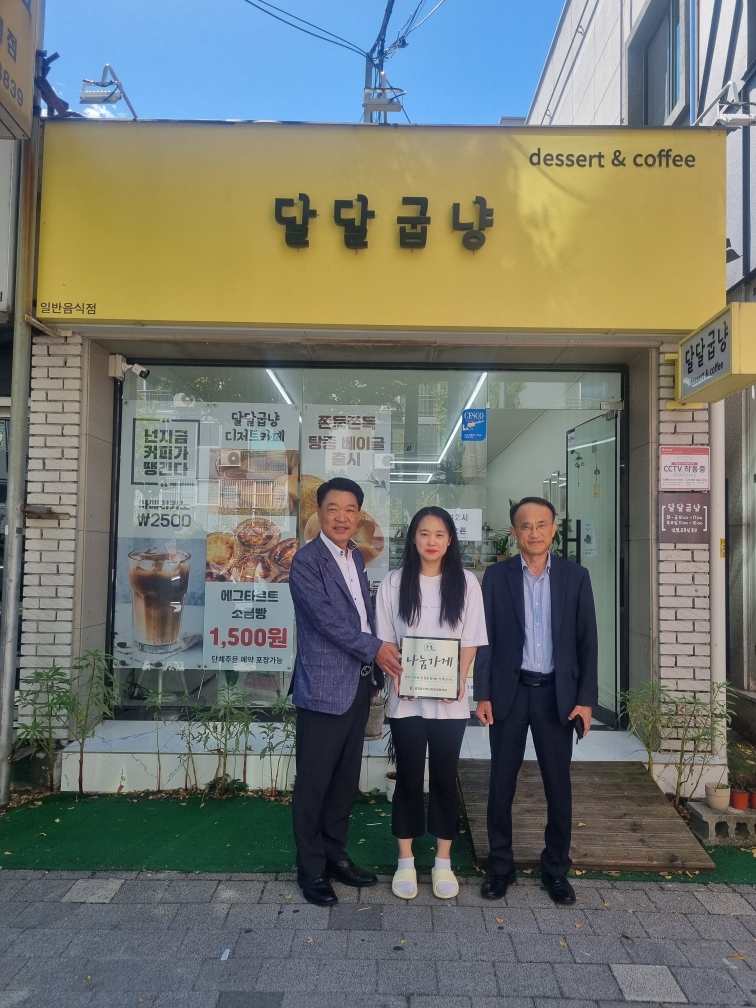 나눔가게는 2022. 6월 중 제1호~제3호의 나눔가게 현판을 전달한 ▲나능이능이버섯백숙(대표 송설화) ▲맘앤파파베이커리(대표 김수정) ▲굽네치킨 광양읍점(대표 김재환)에 이어 이번에 선정된 ‘달달굽냥 디저트 카페(대표 서다은)’까지 4개소로 늘어났다.