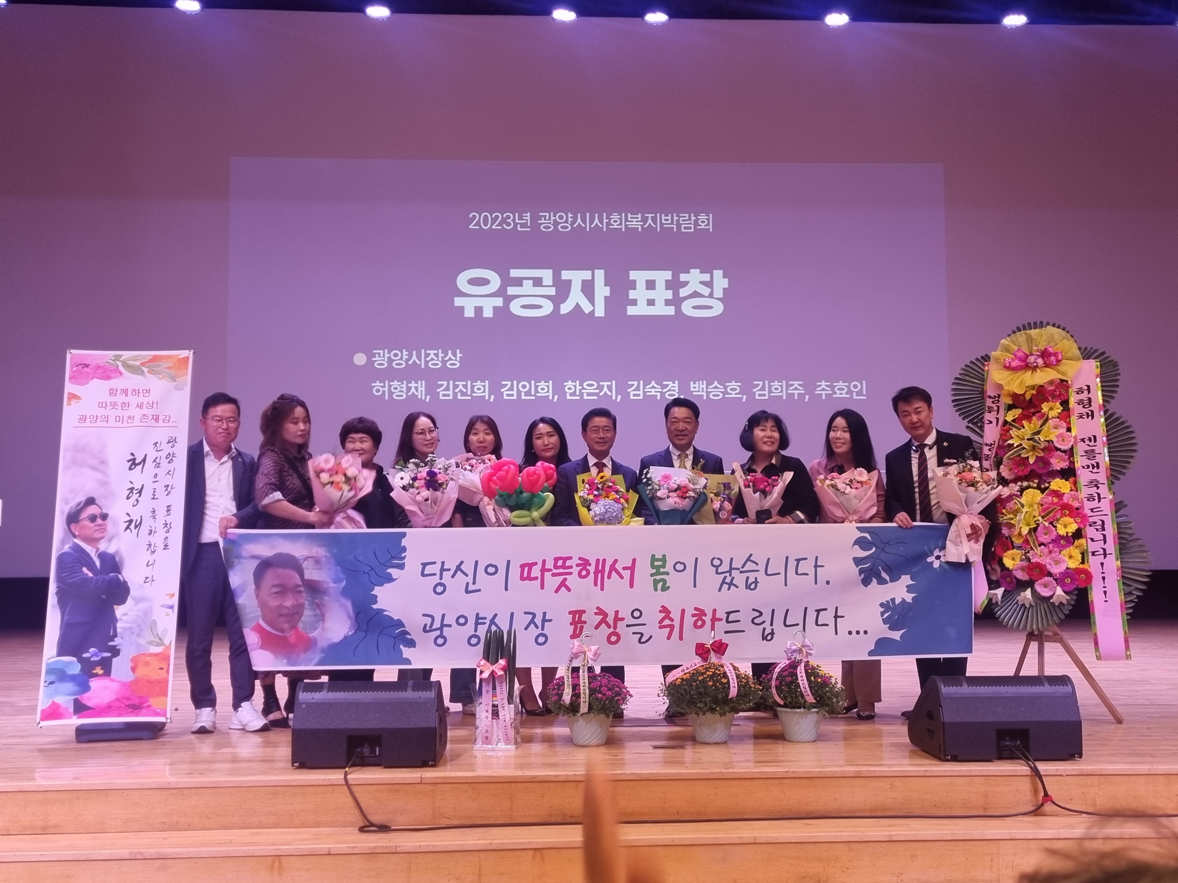 광양읍 지역사회보장협의체 허형채 민간위원장은 금일 (10월 10일) 광양커뮤니티센터 다목적실에서 “2023 광양시 사회복지 박람회” 기념식에서 지역사회복지 증진을 위해 헌신한 노력이 인정되어 광양시장 표창을 수여 받았다.