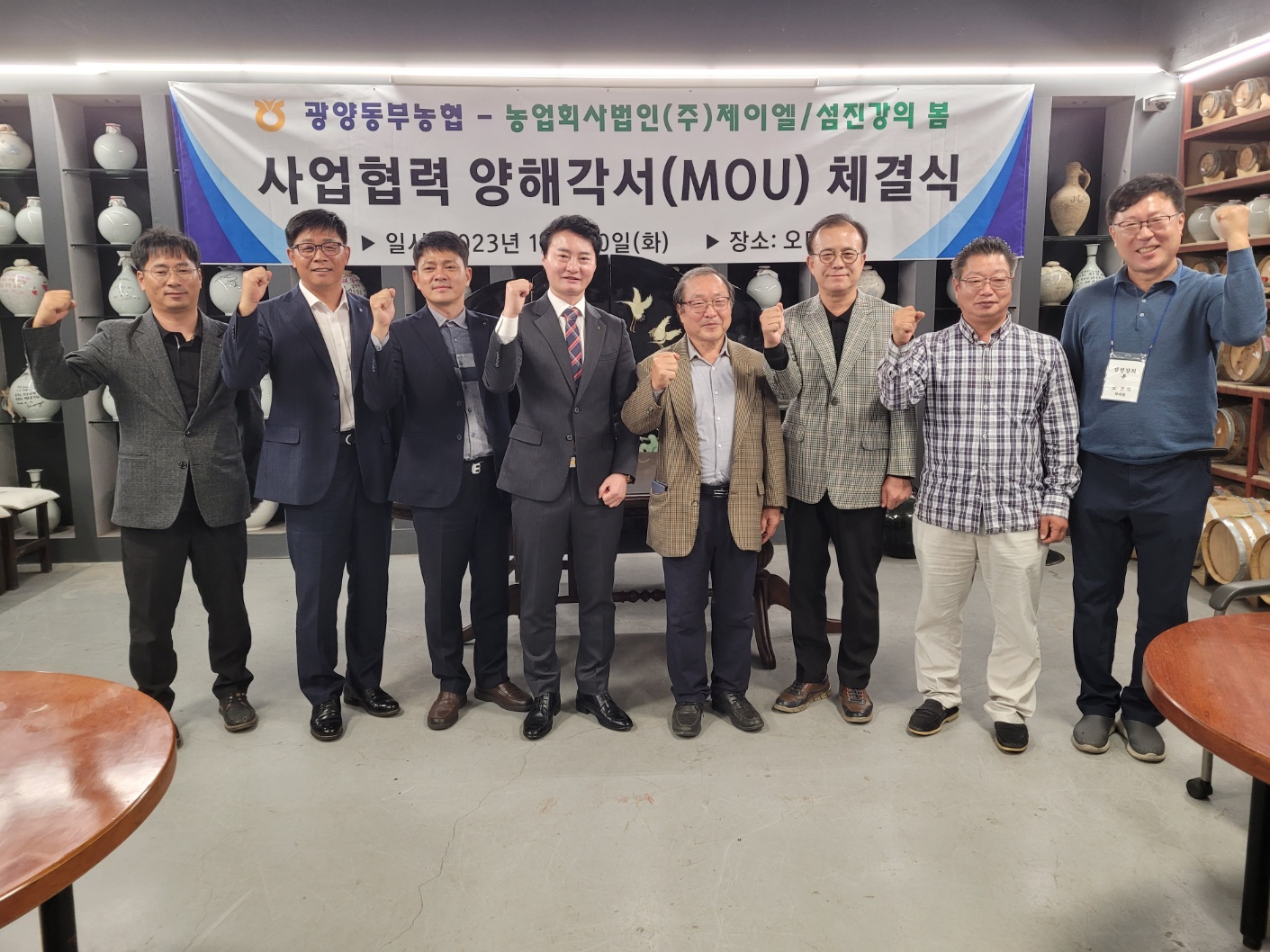 광양동부농협(조합장 문정태)은 지난 10일 농업회사법인(주)제이엘/섬진강의봄(대표 이종기)과 사업협력을 다짐하는 양해각서(MOU) 체결식을 가졌다.