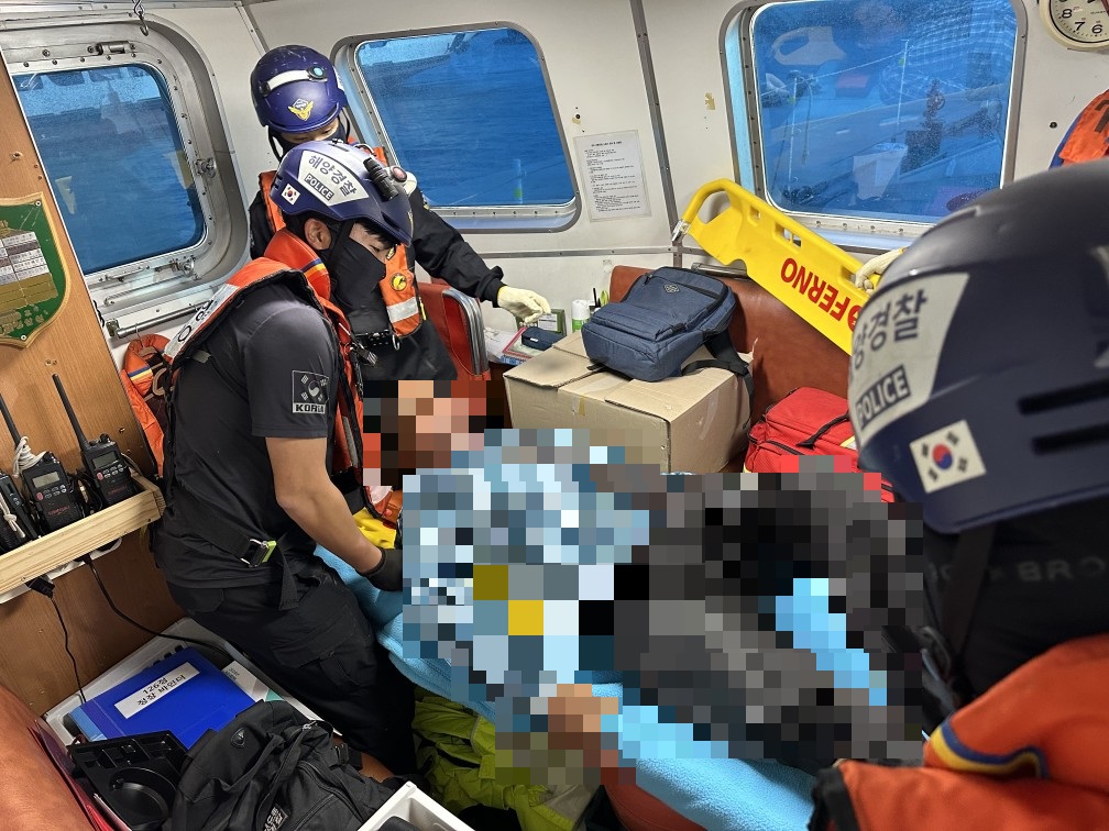 왼손 골절이 추정된다는 신고를 접수, 민간어선과 연안구조정을 경유해 육지로 이송했다.