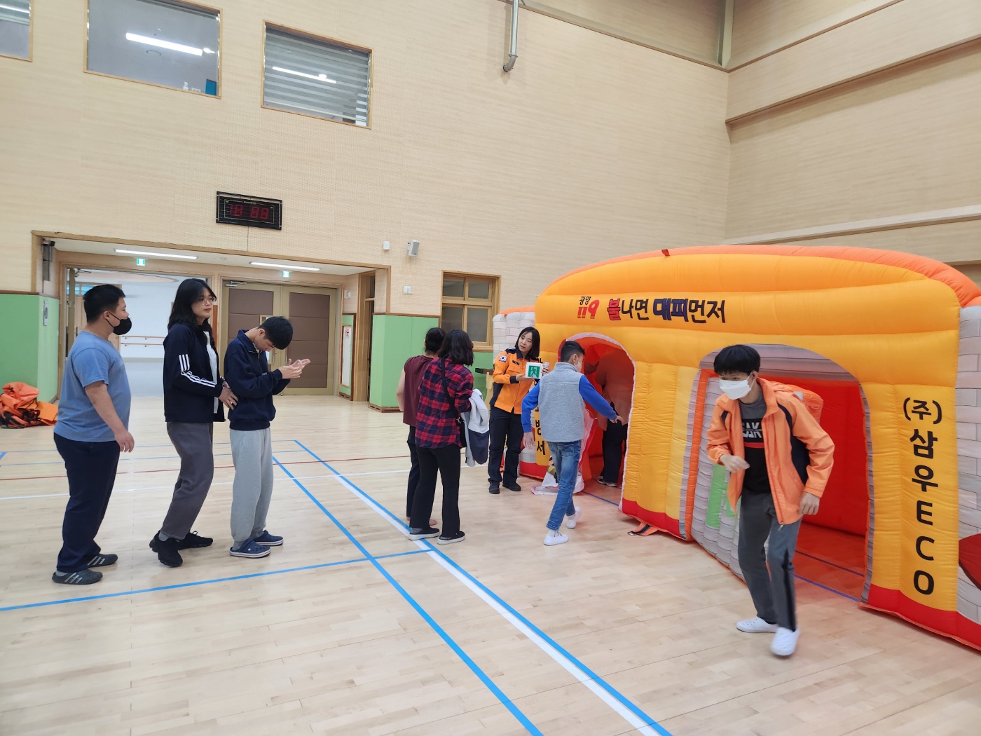 교육 내용은 ▲응급상황 발생 시 119 신고 요령, ▲교육용 마네킹을 활용한 심폐소생술 체험 ▲ 불나면 대피먼저! 에어바운스를 활용한 화대대피 체험 ▲ 물 소화기를 활용한 초기화재진압 체험 등이다.
