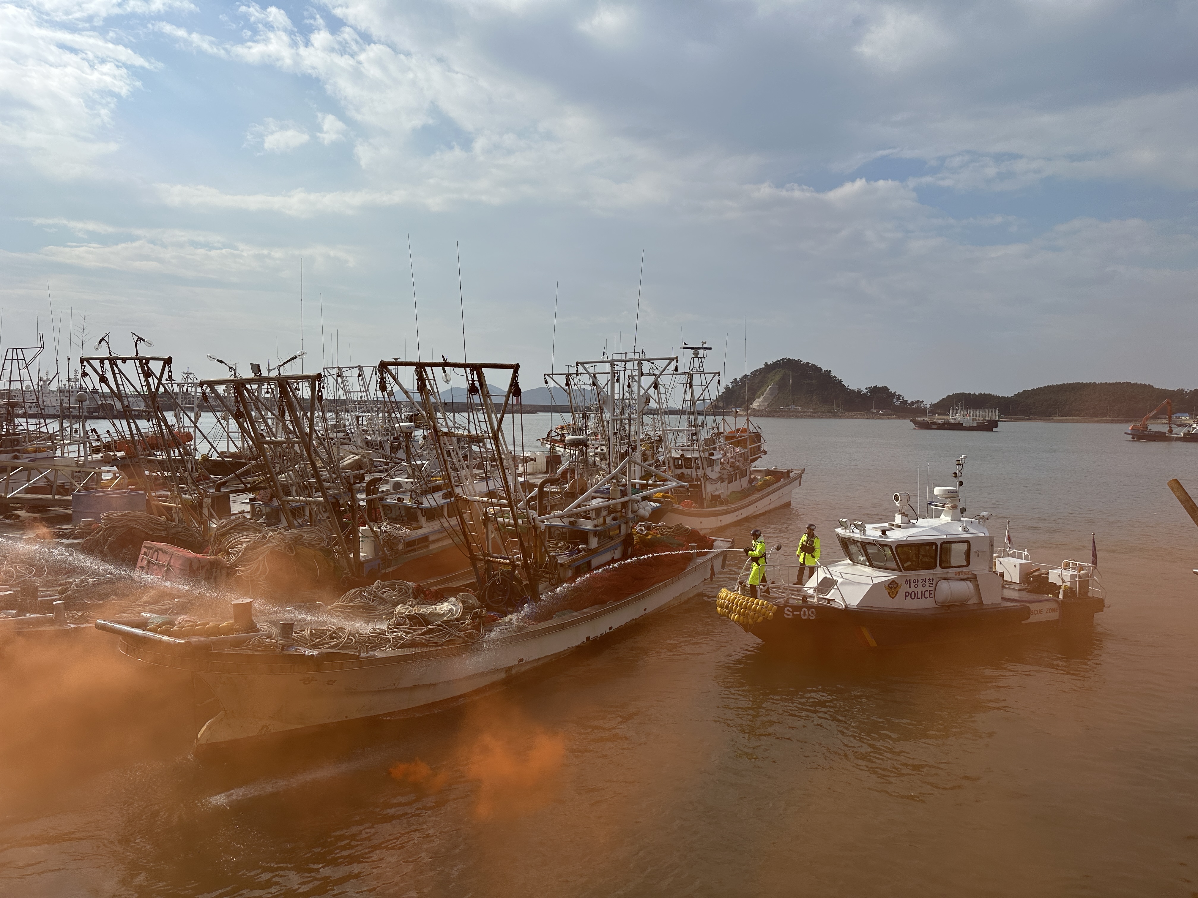 24일 오후 2시 근흥119 안전센터와 어민들이 합동으로 충남 태안군 근흥면 신진항 내에서