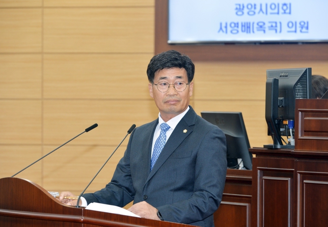서영배 의원은 광양시립 영세공원 운영, 소방도로 개설, 버스승강장 디자인 개선, 농·축·수산물 가공식품 마케팅, 축제 활성화, 자매도시 교류 활성화에 대해 질문했다.