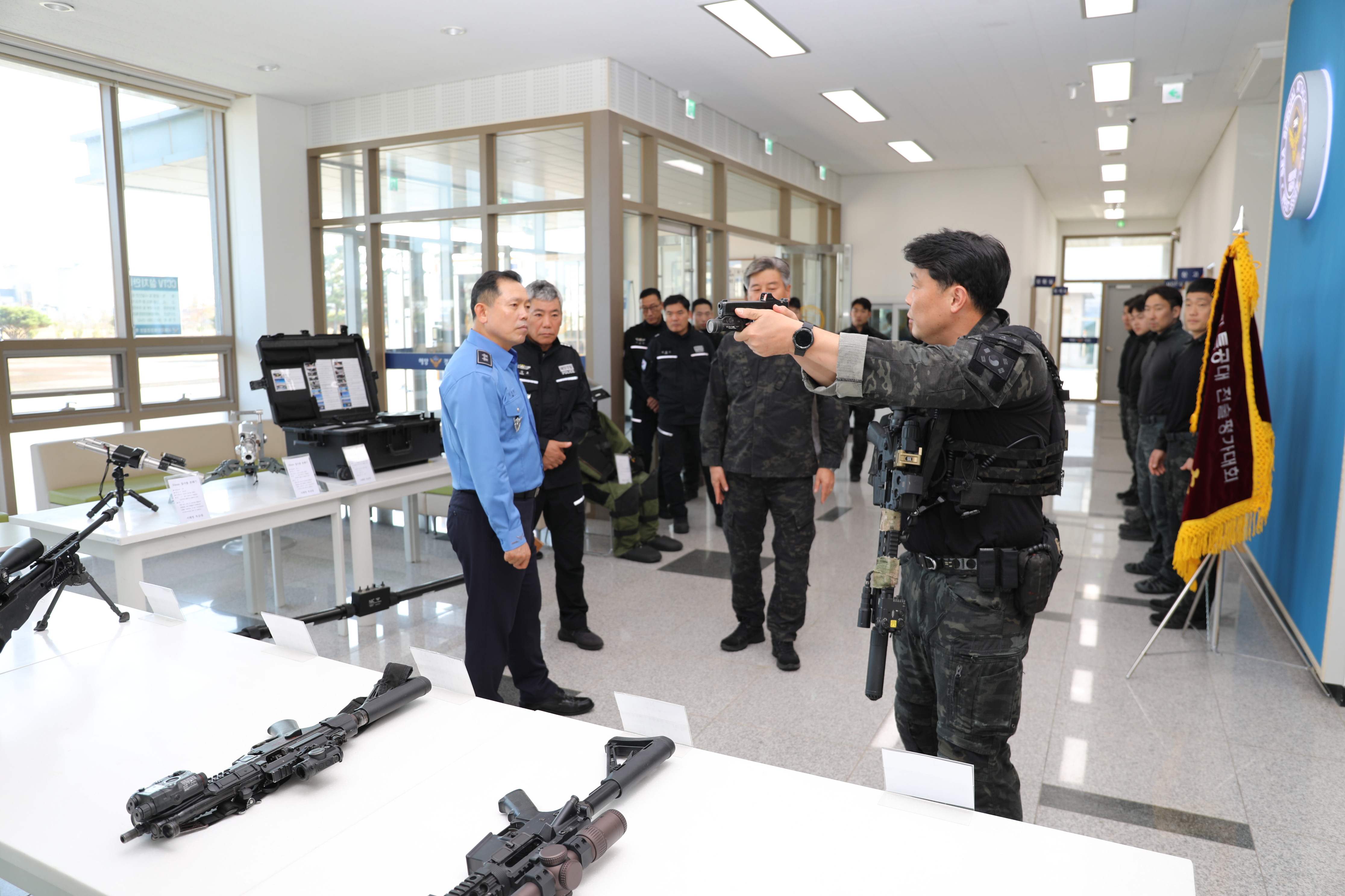지난 27일 실시한 해양경찰특공대 전술평가 대회에서 종합우승을 차지한 특공대를 방문하여 참가자들을