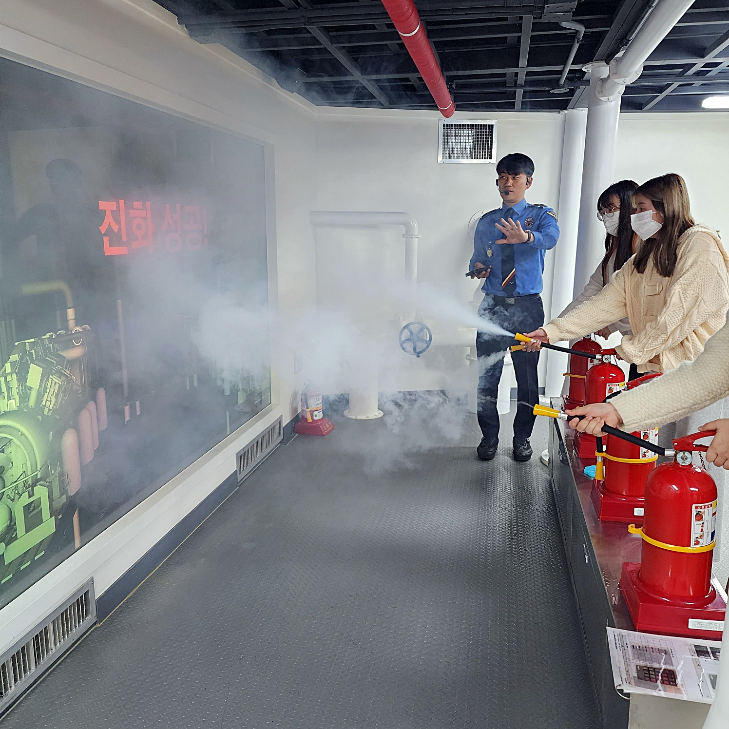 지난 7일 오후 재난대응실습장에서 한국해양대 해사법학부 학생 50여명을 대상으로