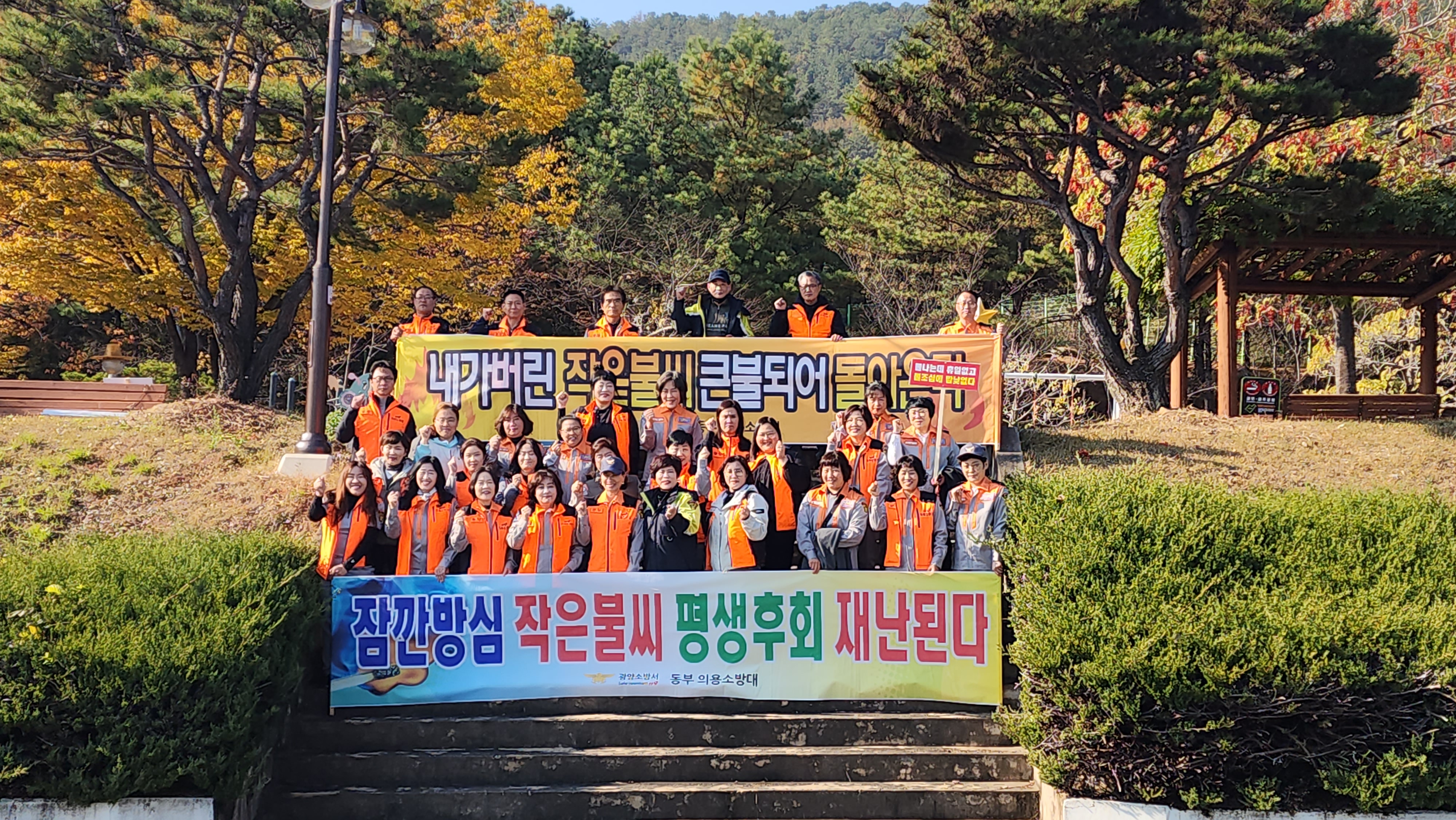 동부의용소방대은 11월 "불조심 강조의 달"을 맞이하여 가야산 등산로일대에서 산불예방 캠페인 및 홍보용 전단지를 등산객에게 배포하며 산불 예방을위해 함께 동참해줄것을 당부했다.
