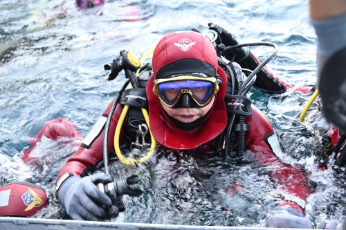 윤태연 서귀포해양경찰서장은 어제(22일) 오후 서귀포 문섬 인근 해상에서 서 귀포 해양경찰 구조대와 잠수훈련...
