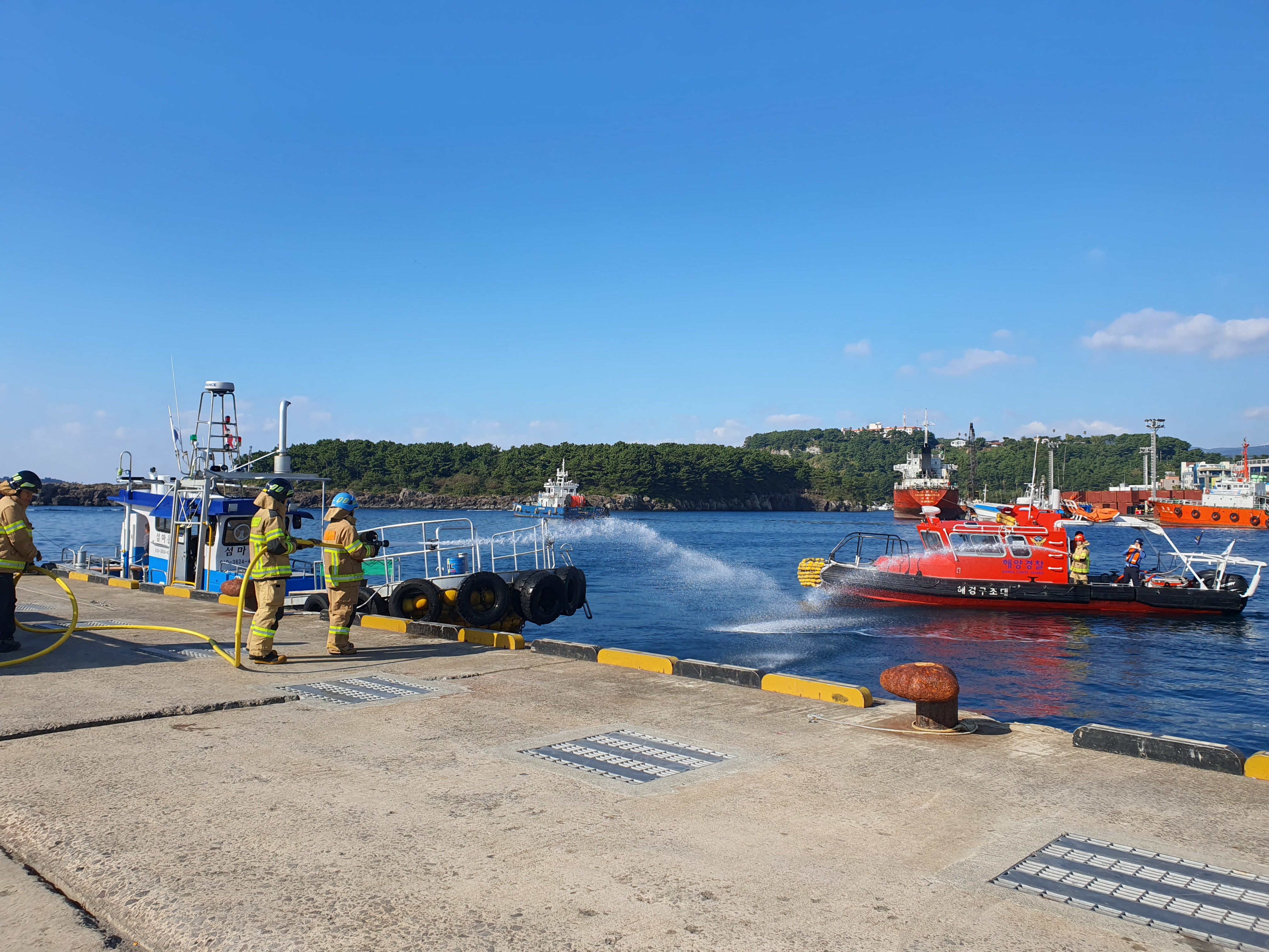 서귀포해양경찰서(서장 윤태연)는 주요 항·포구인 서귀포항, 모슬포항, 성산포항에서 화재대응 합동훈련을 15일·16일·21일 3일간에 걸쳐 실시했다고 밝혔다.